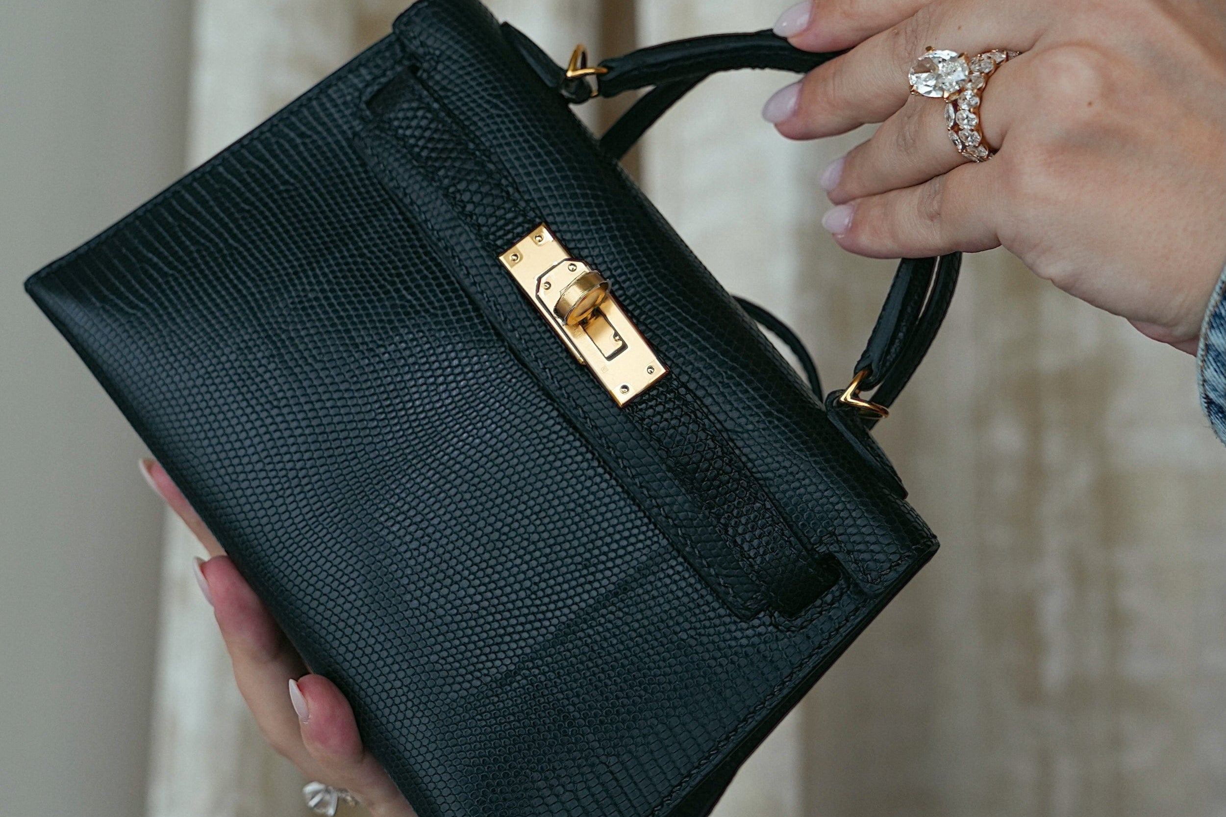 Mini Kelly Sellier Black Lizard Niloticus Gold Plated Z Stamp
