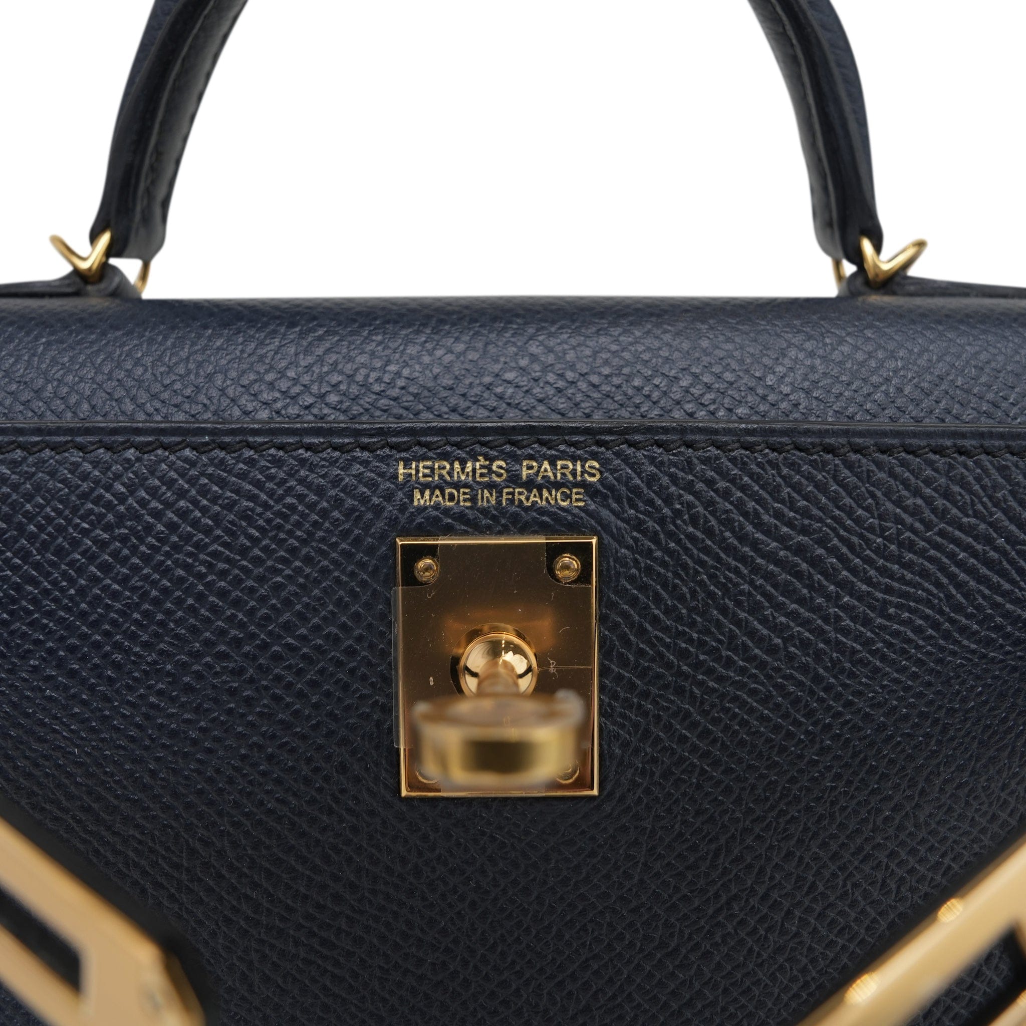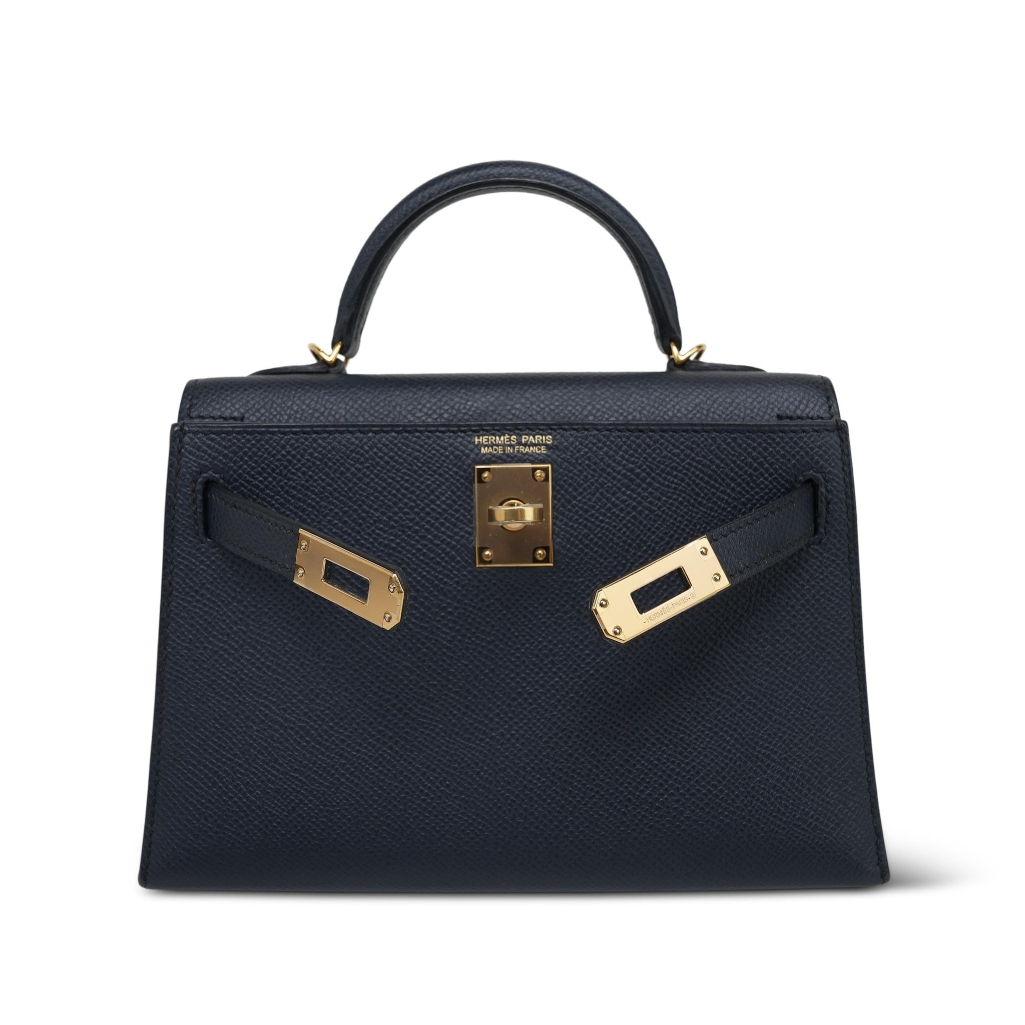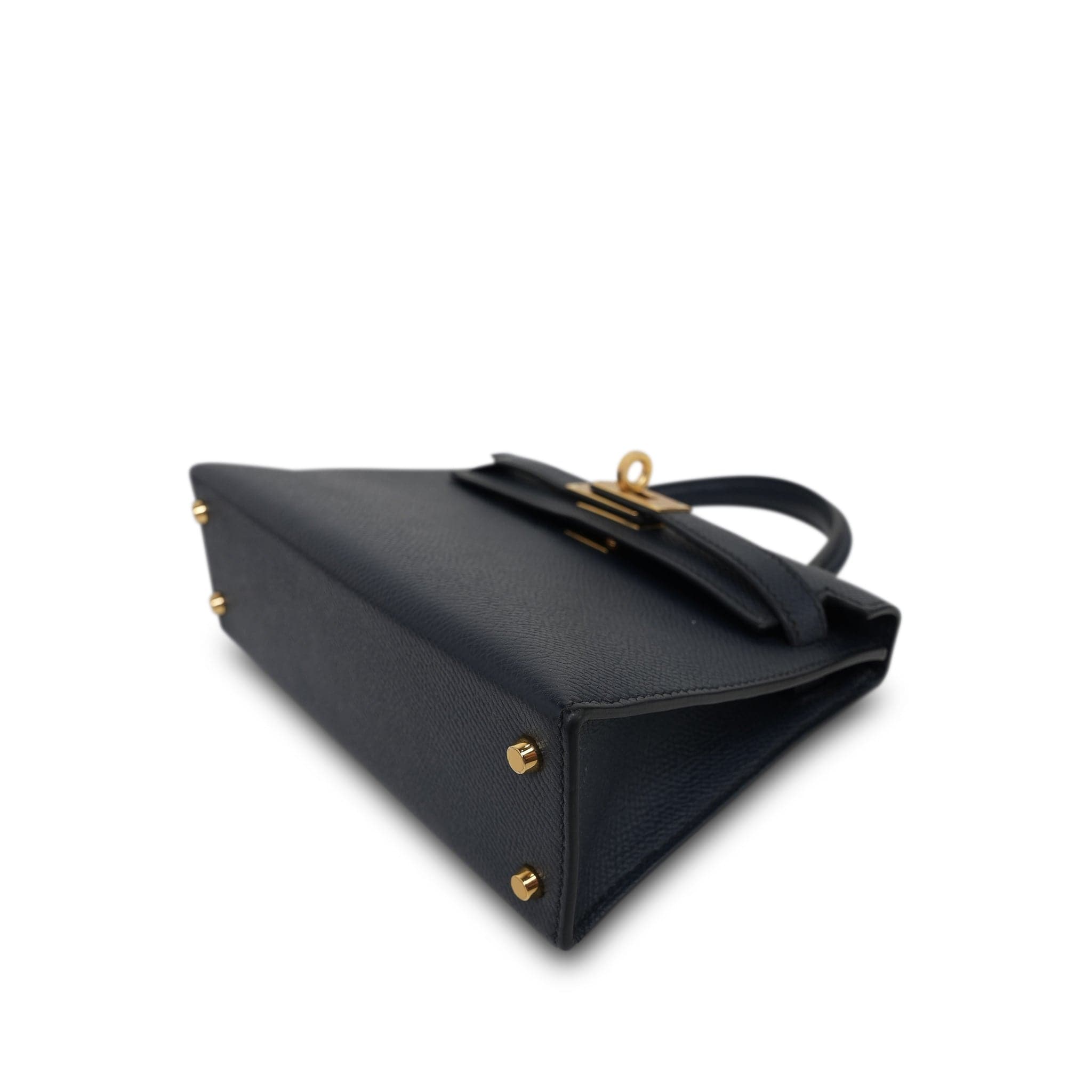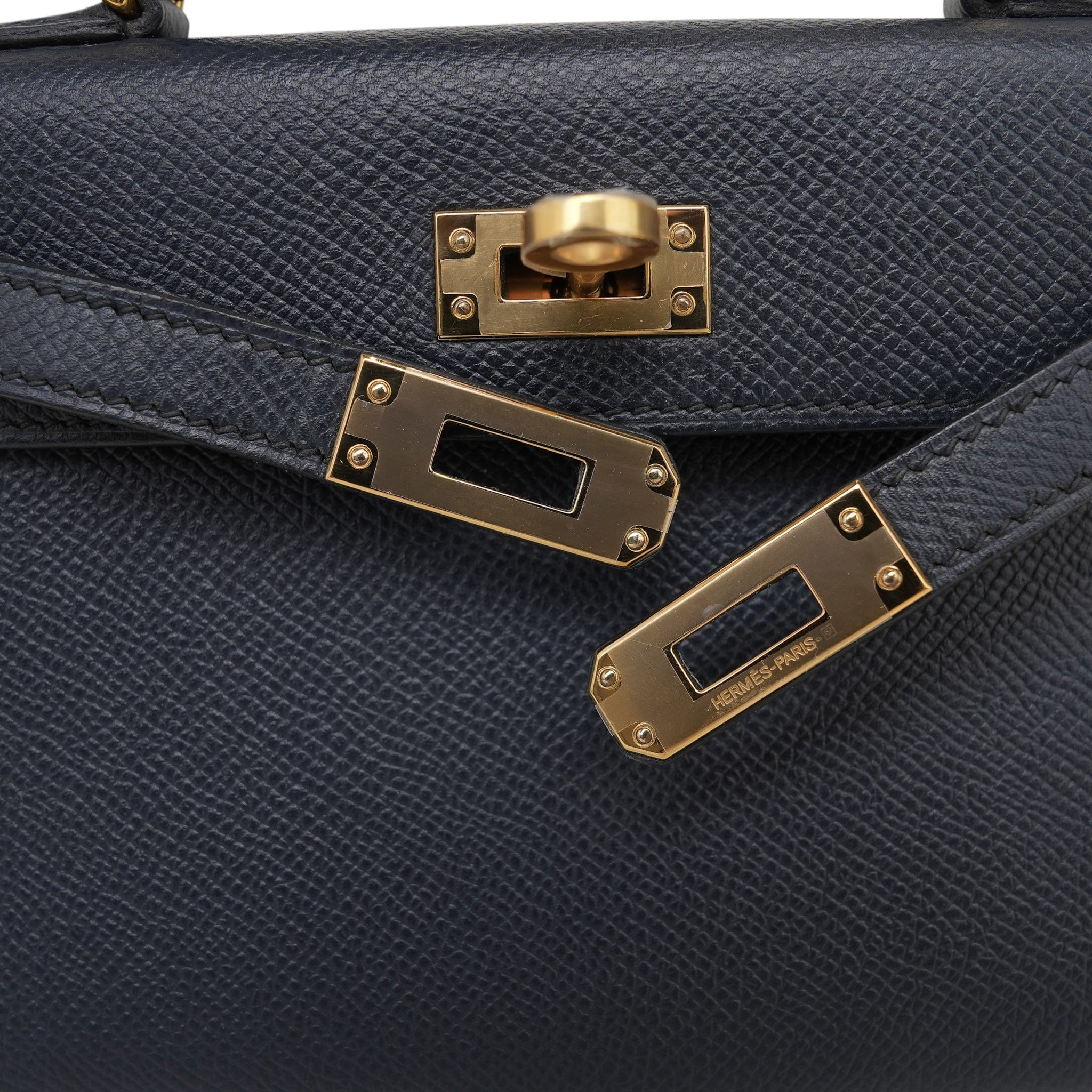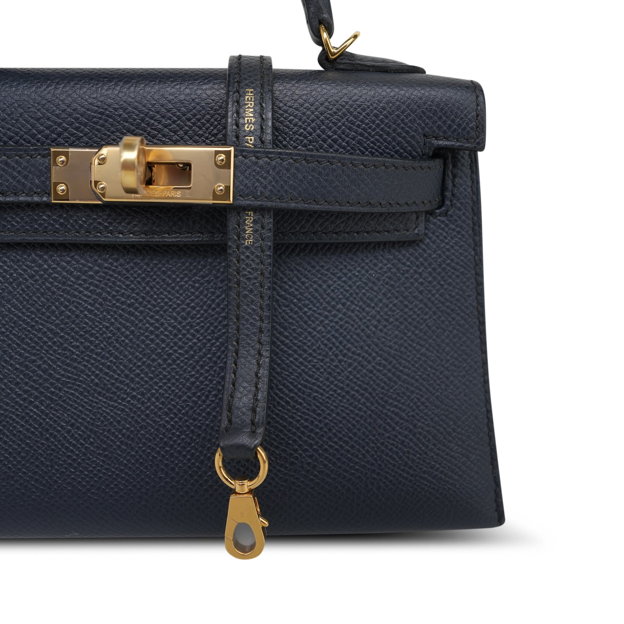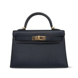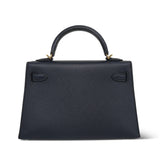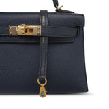 Mini Kelly Sellier Bleu Indigo Epsom Gold Plated A Stamp