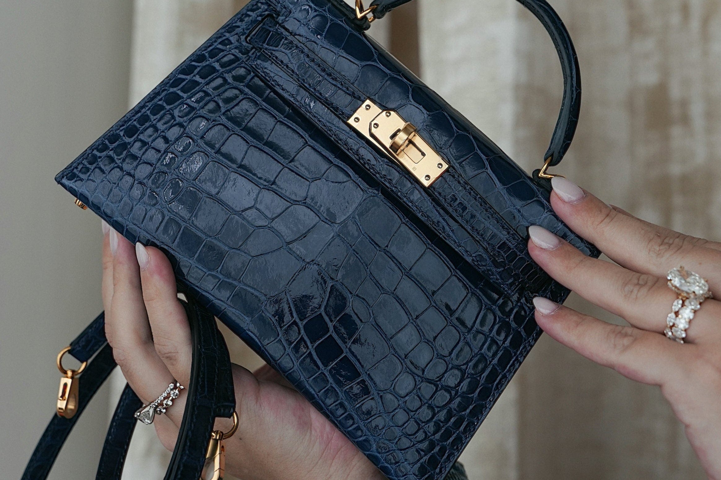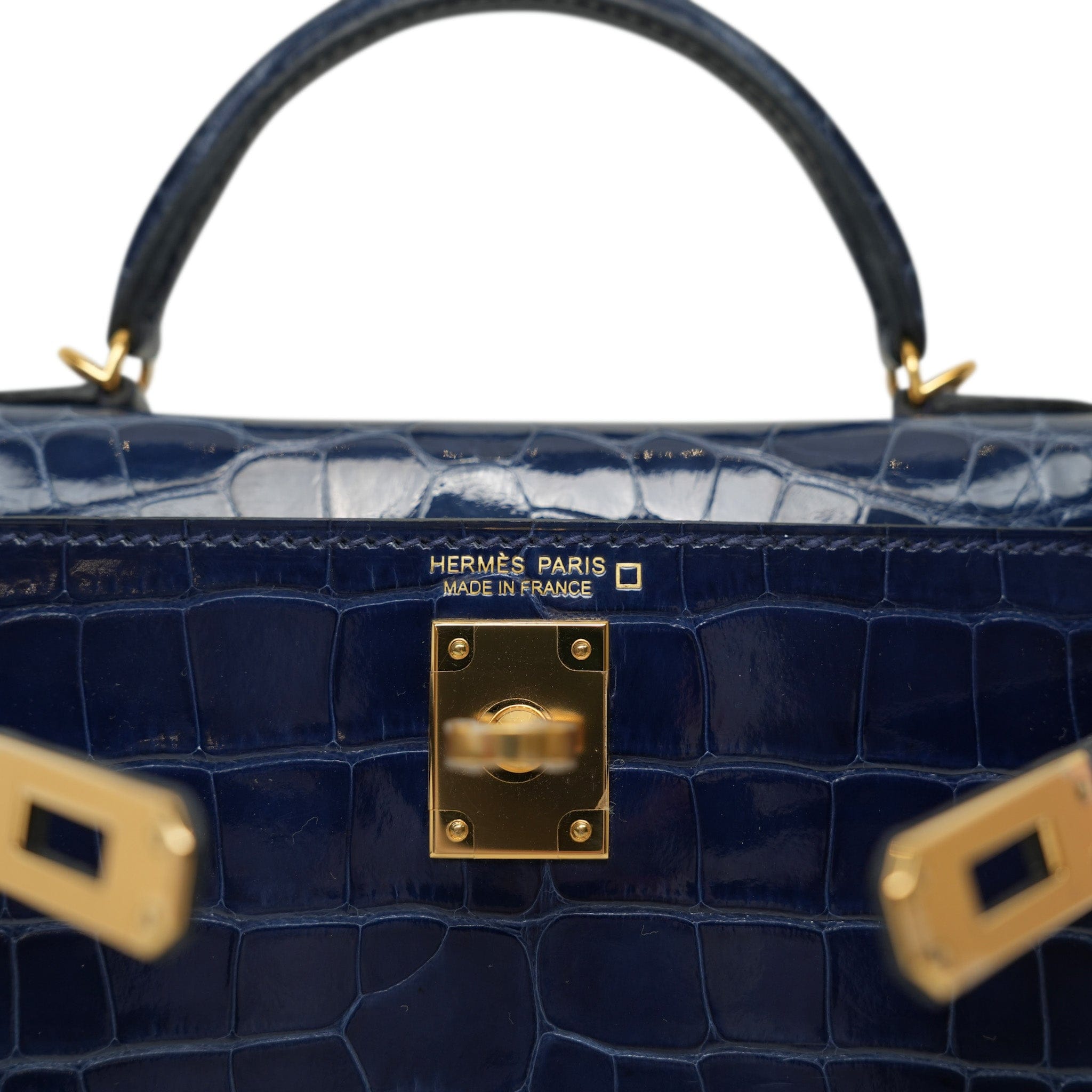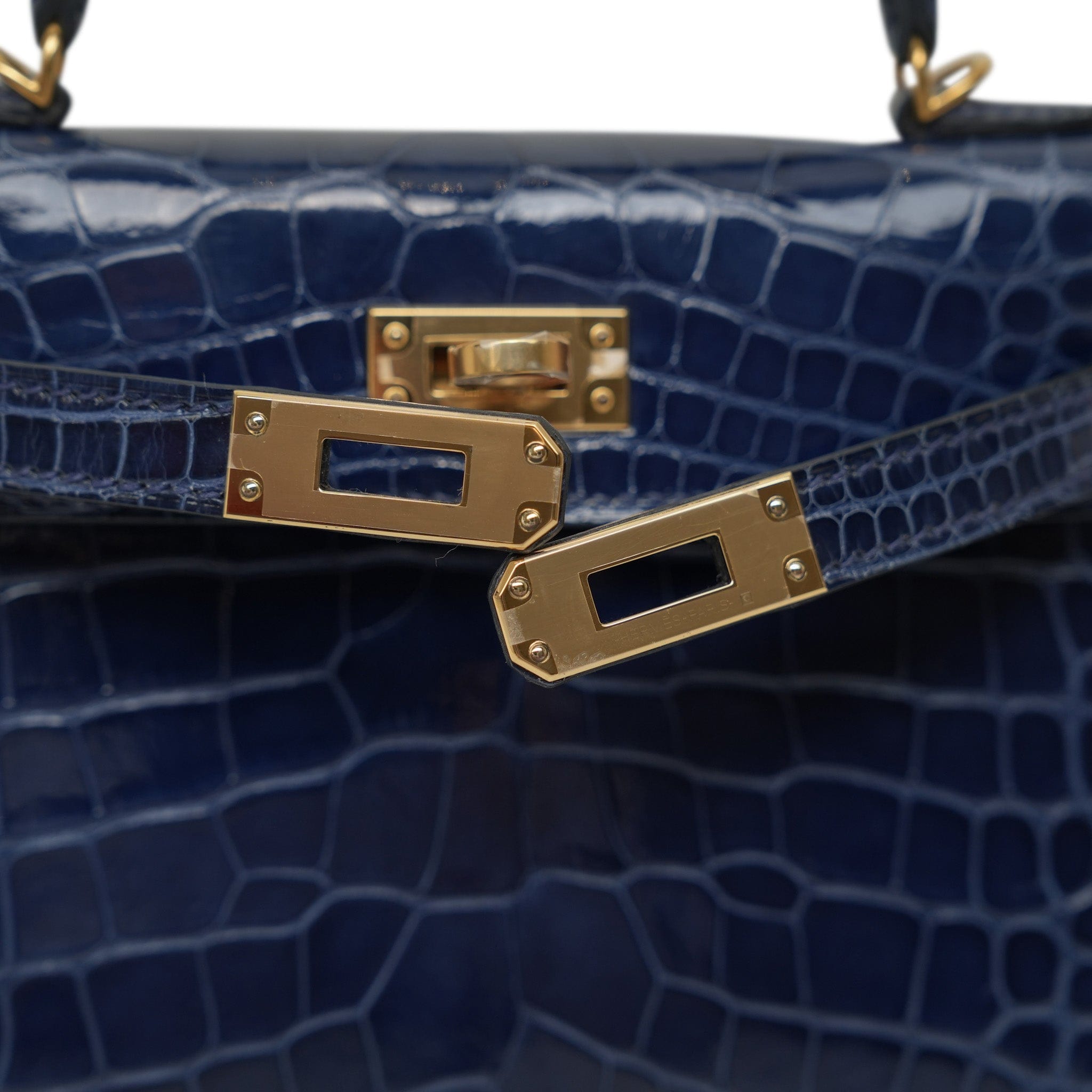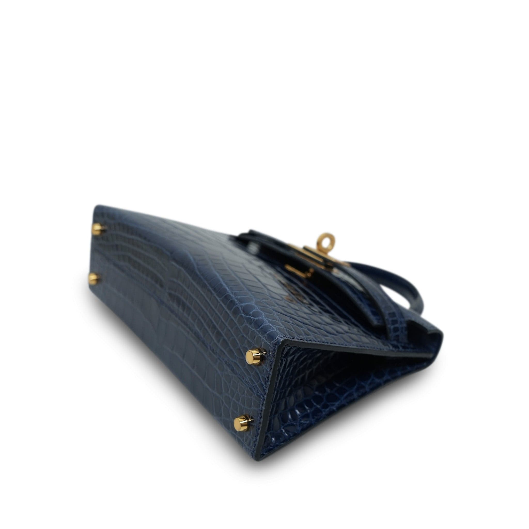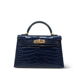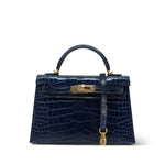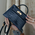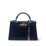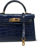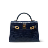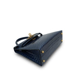 Mini Kelly Sellier Bleu Encre Missippian Alligator Gold Plated C Stamp