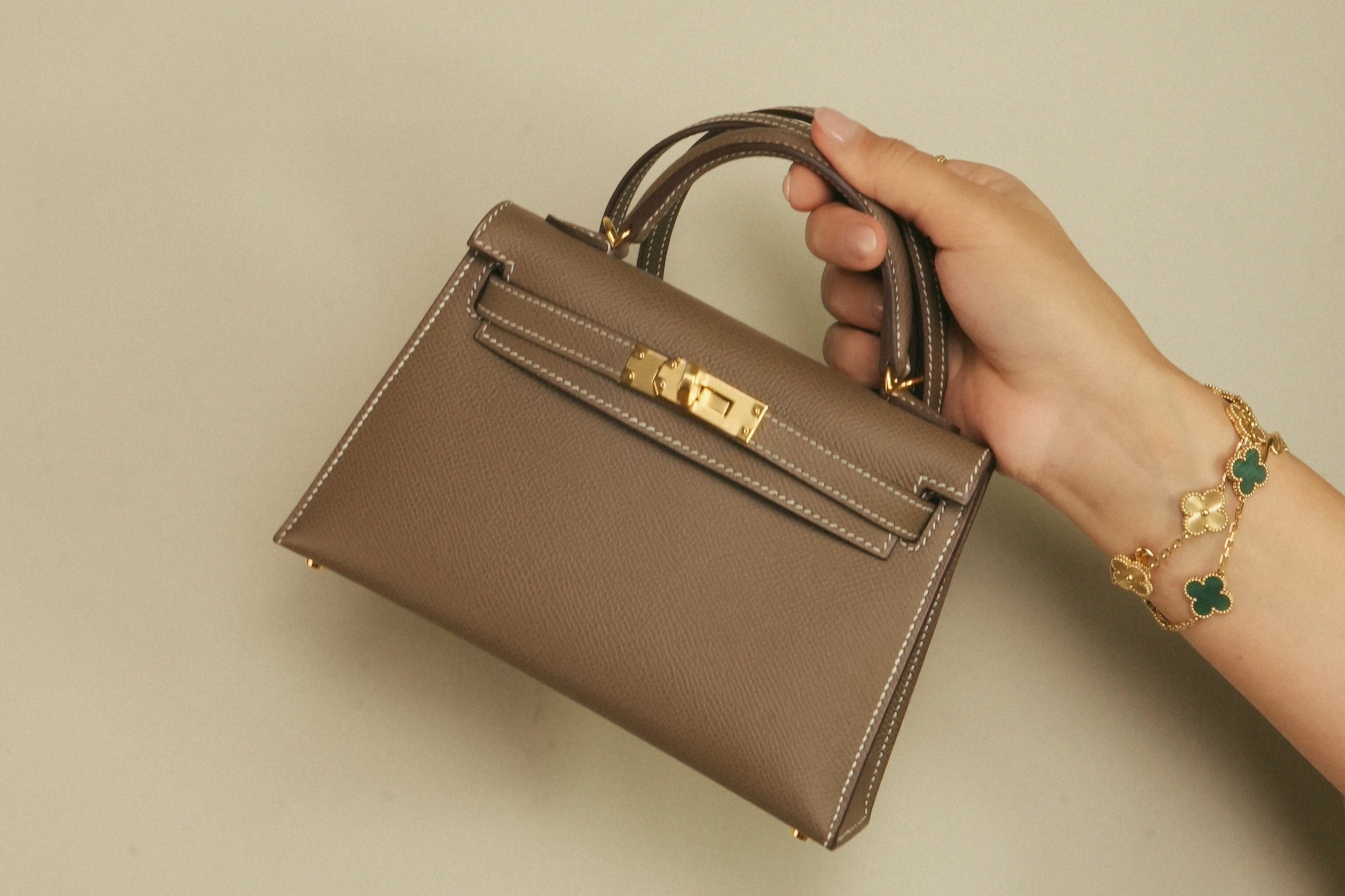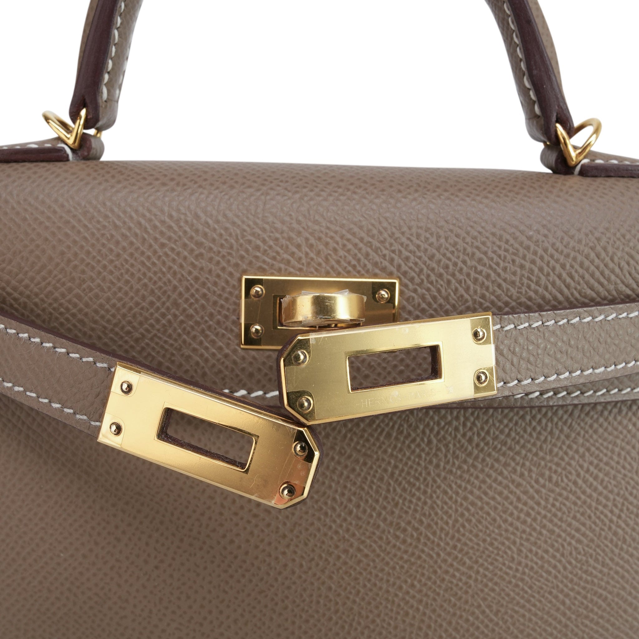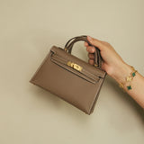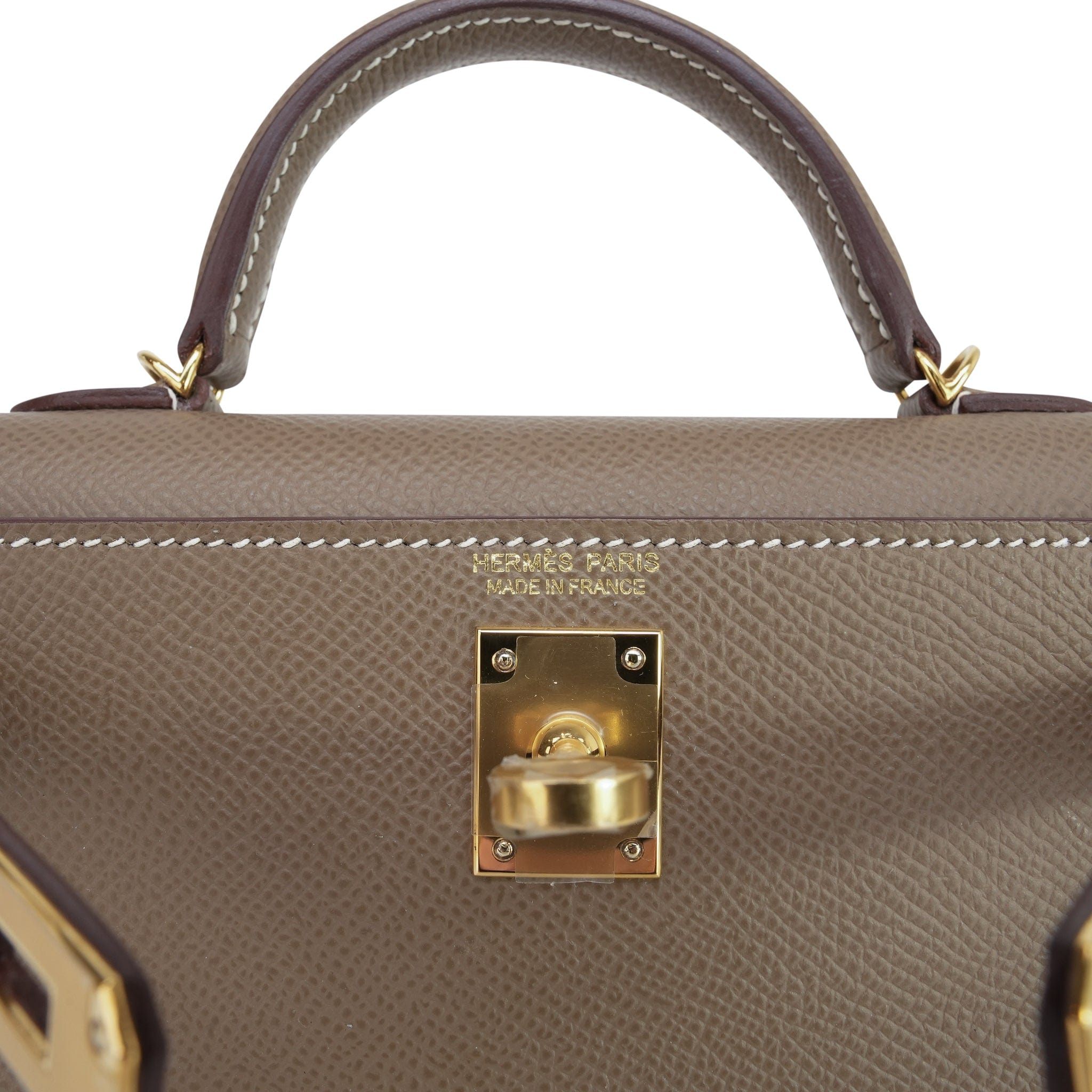 Mini Kelly Sellier Etoupe Veau Epsom Gold Plated U Stamp