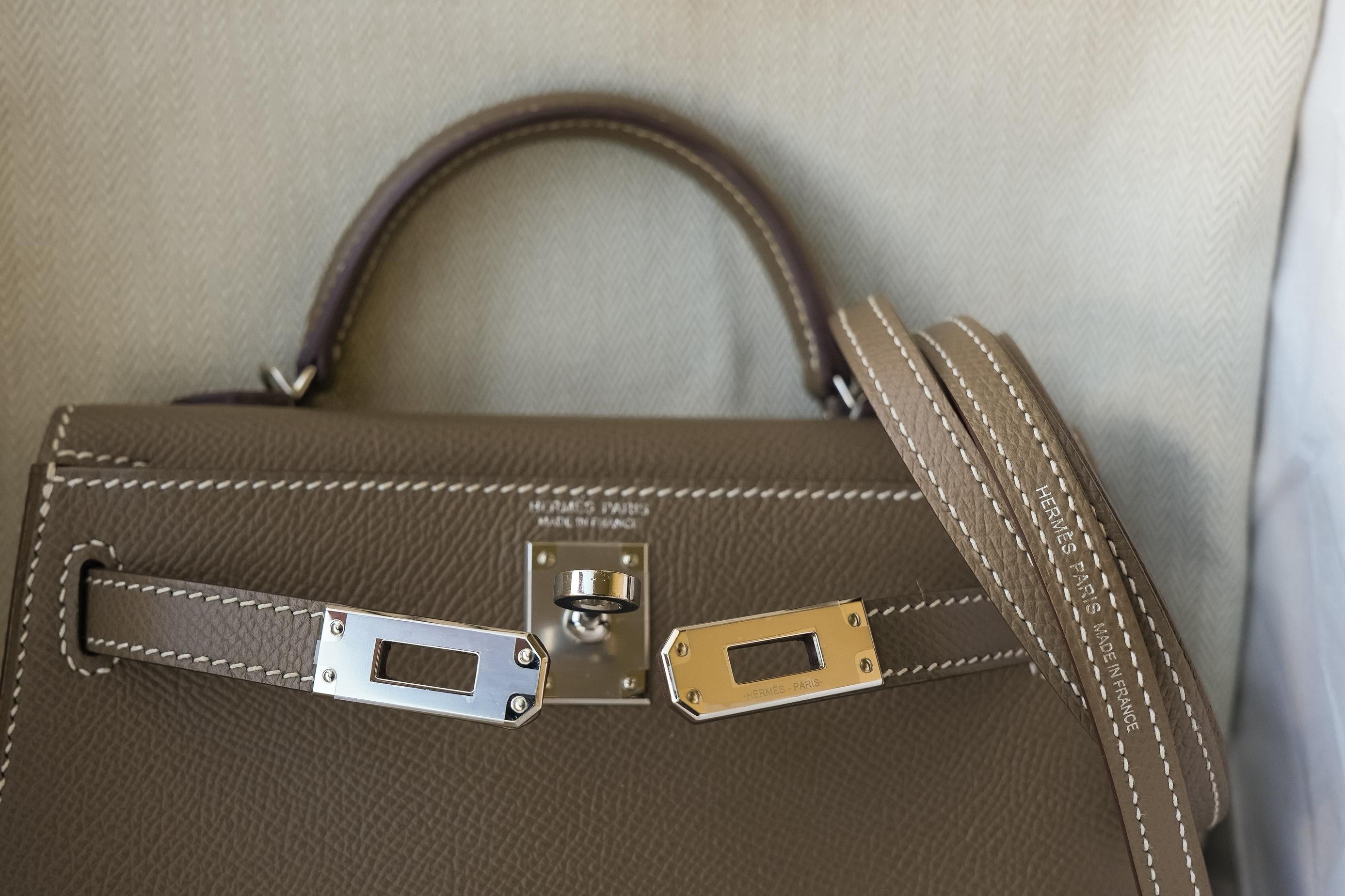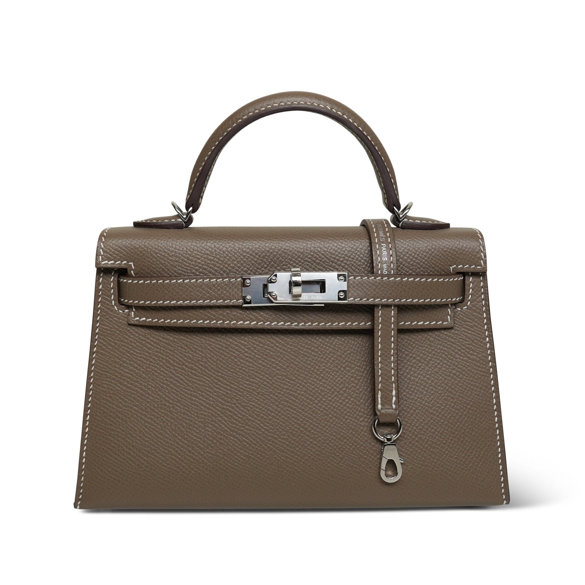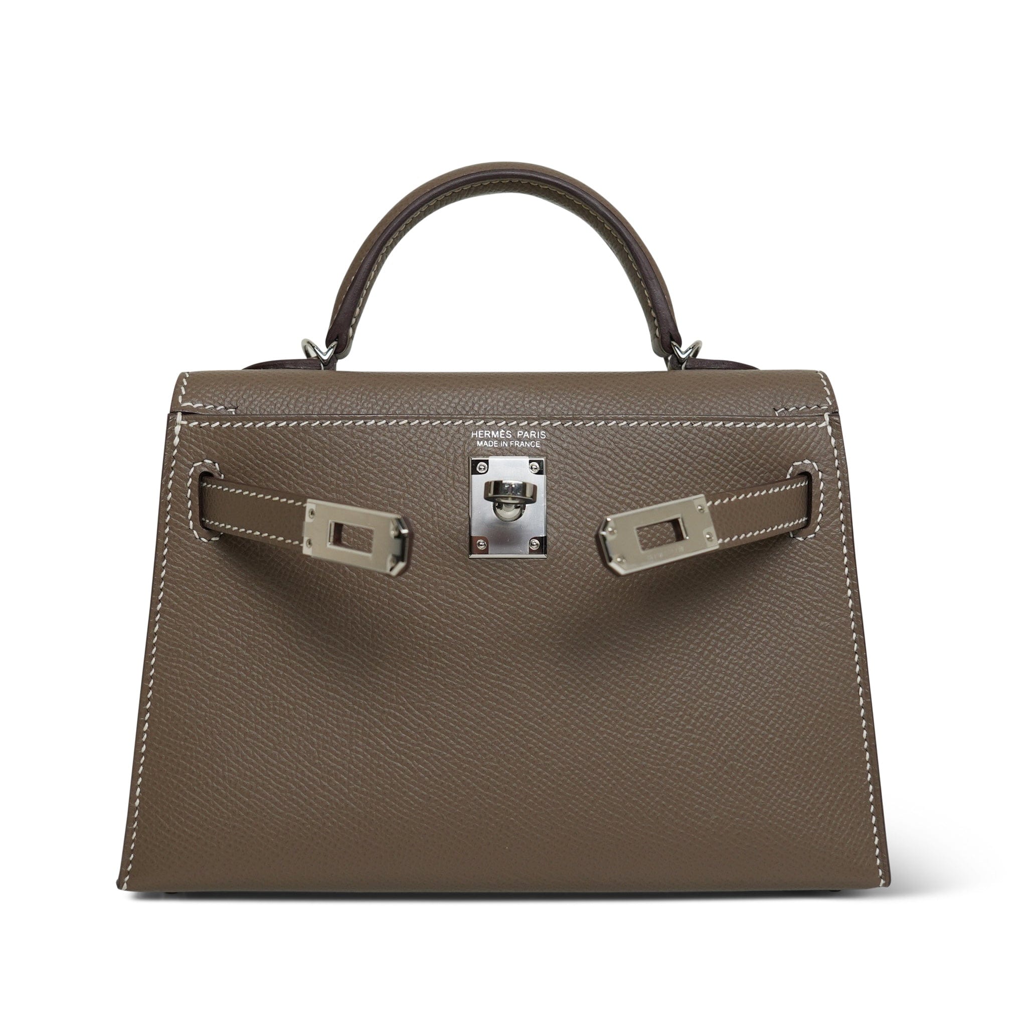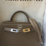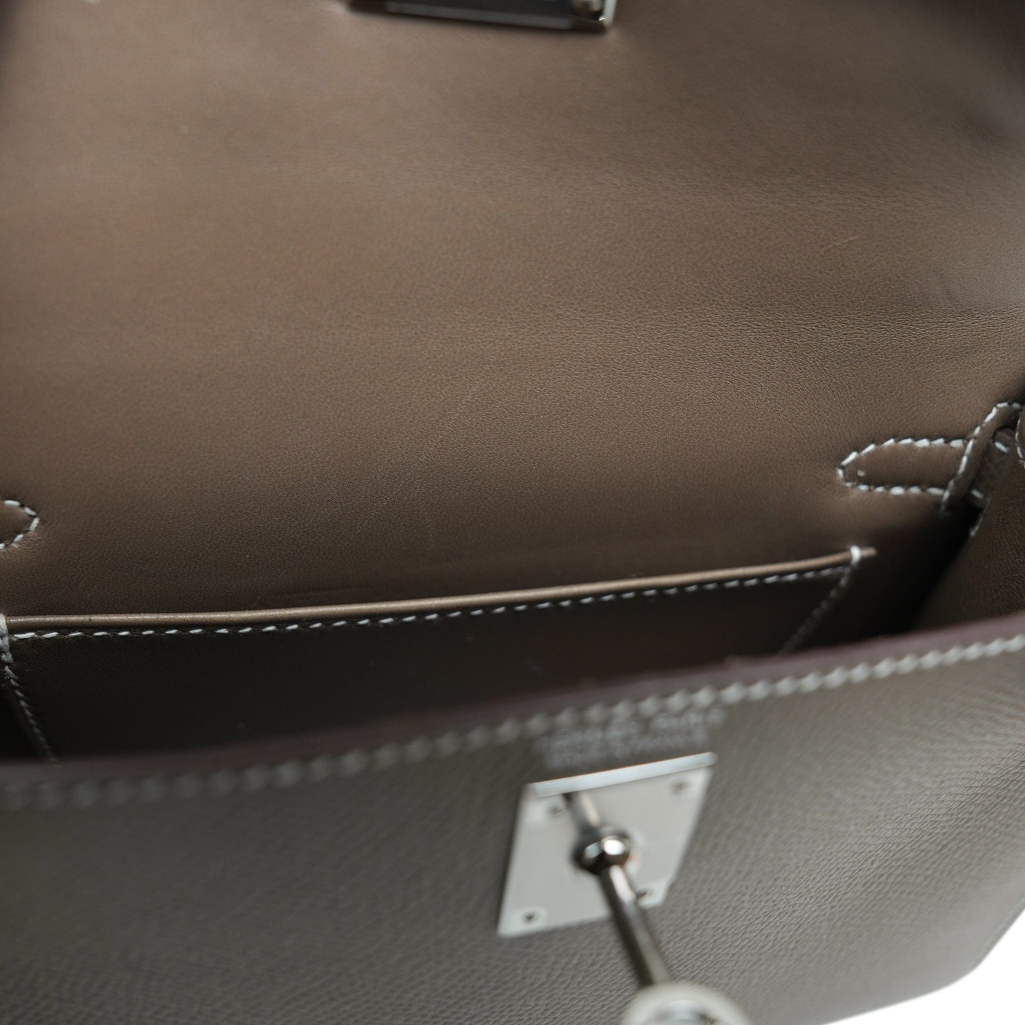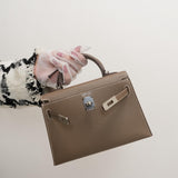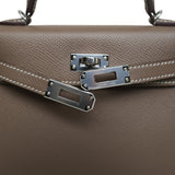 Mini Kelly Sellier Etoupe Veau Epsom Palladium Plated U Stamp