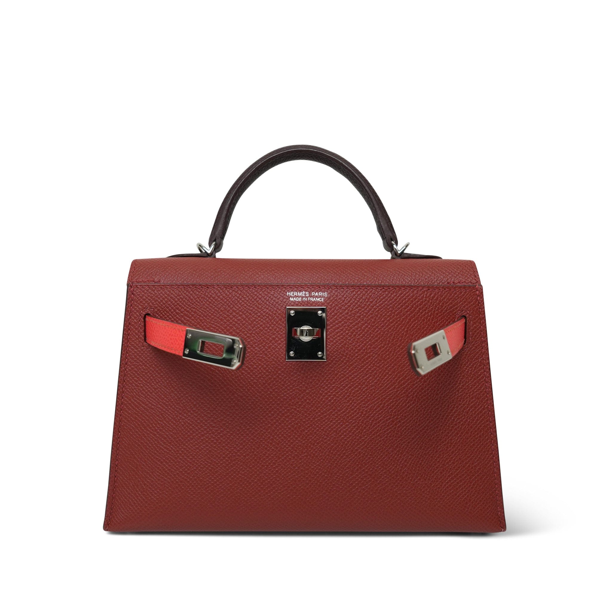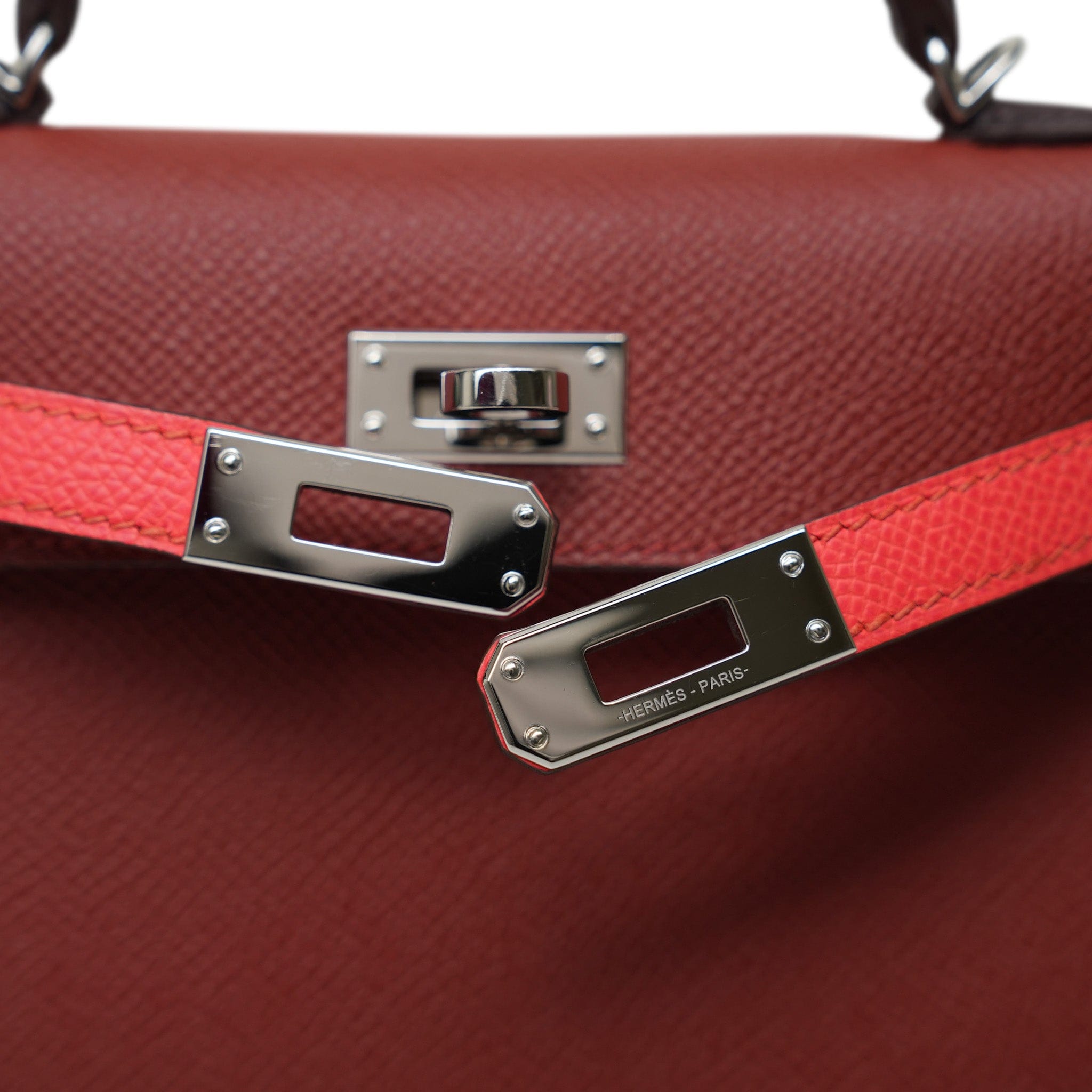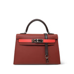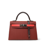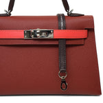 Mini Kelly Sellier Tri-Color Horseshoe (HSS) Rouge Venetian/Rouge Sellier/Rose Texas Epsom Palladium Plated U Stamp