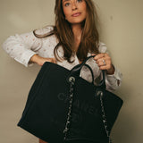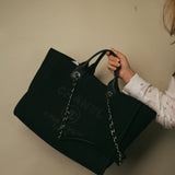 22C Navy/Black Canvas Deauville Shopping Tote Large Silver Hardware