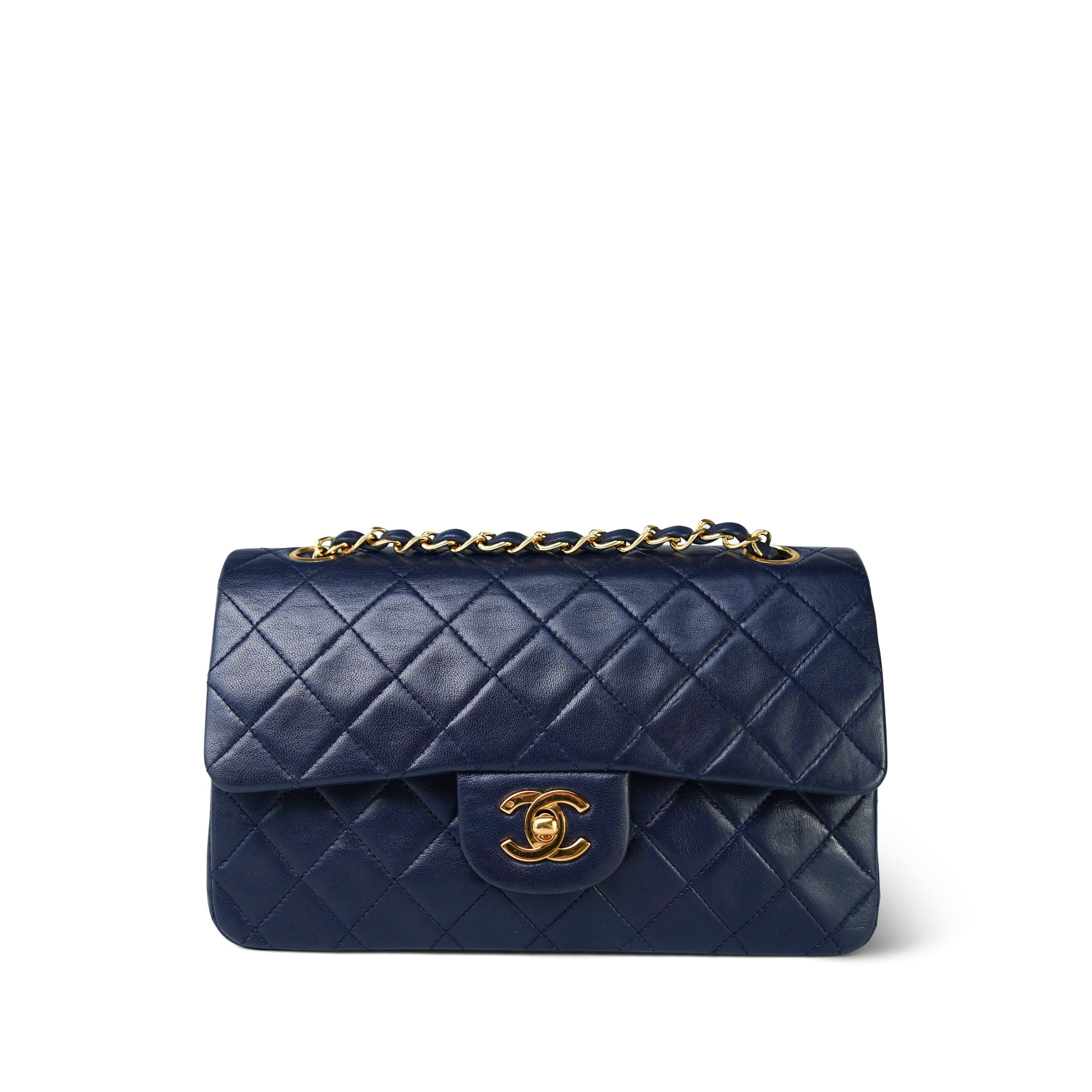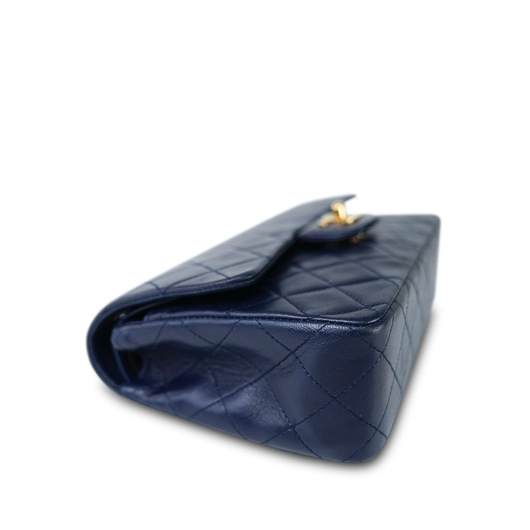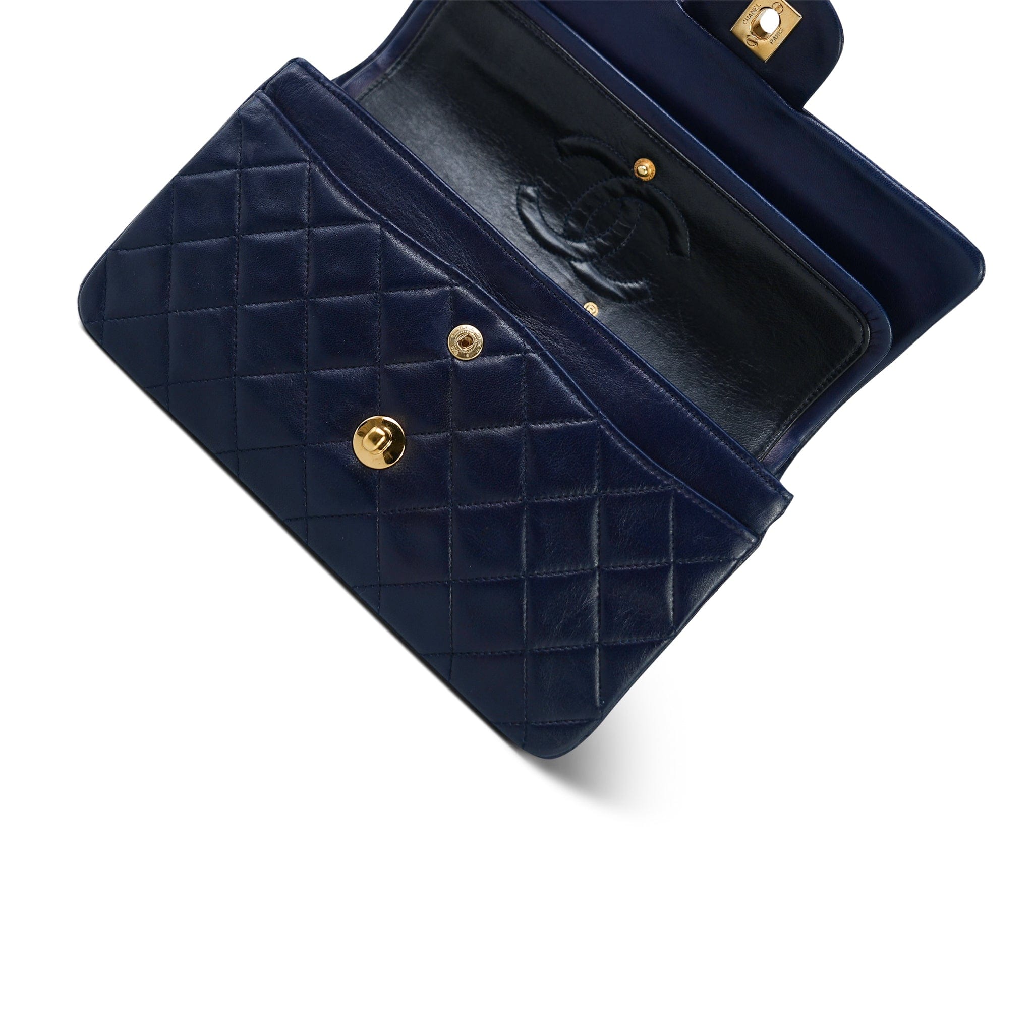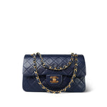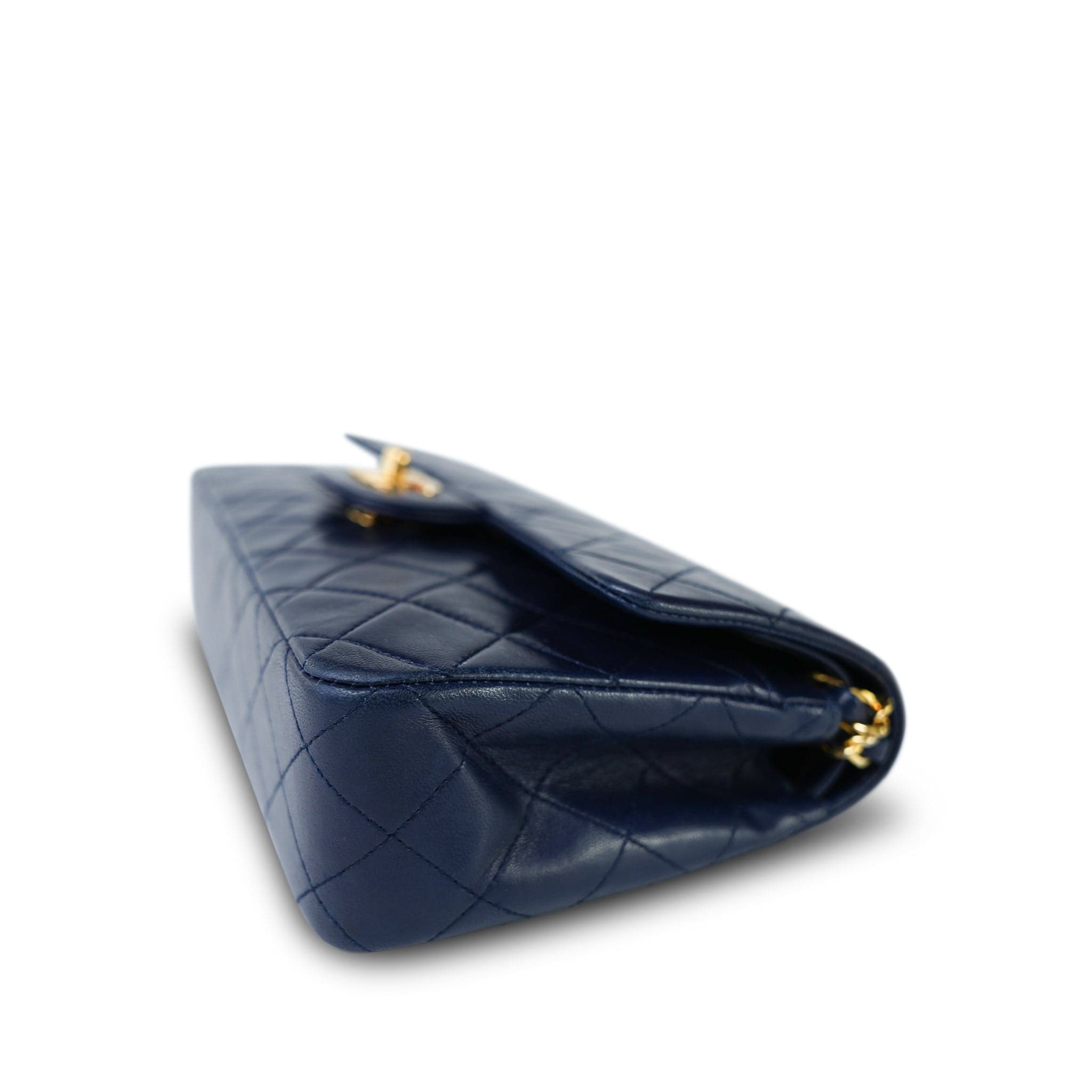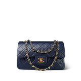 Navy Lambskin Quilted Classic Flap Small Gold Hardware