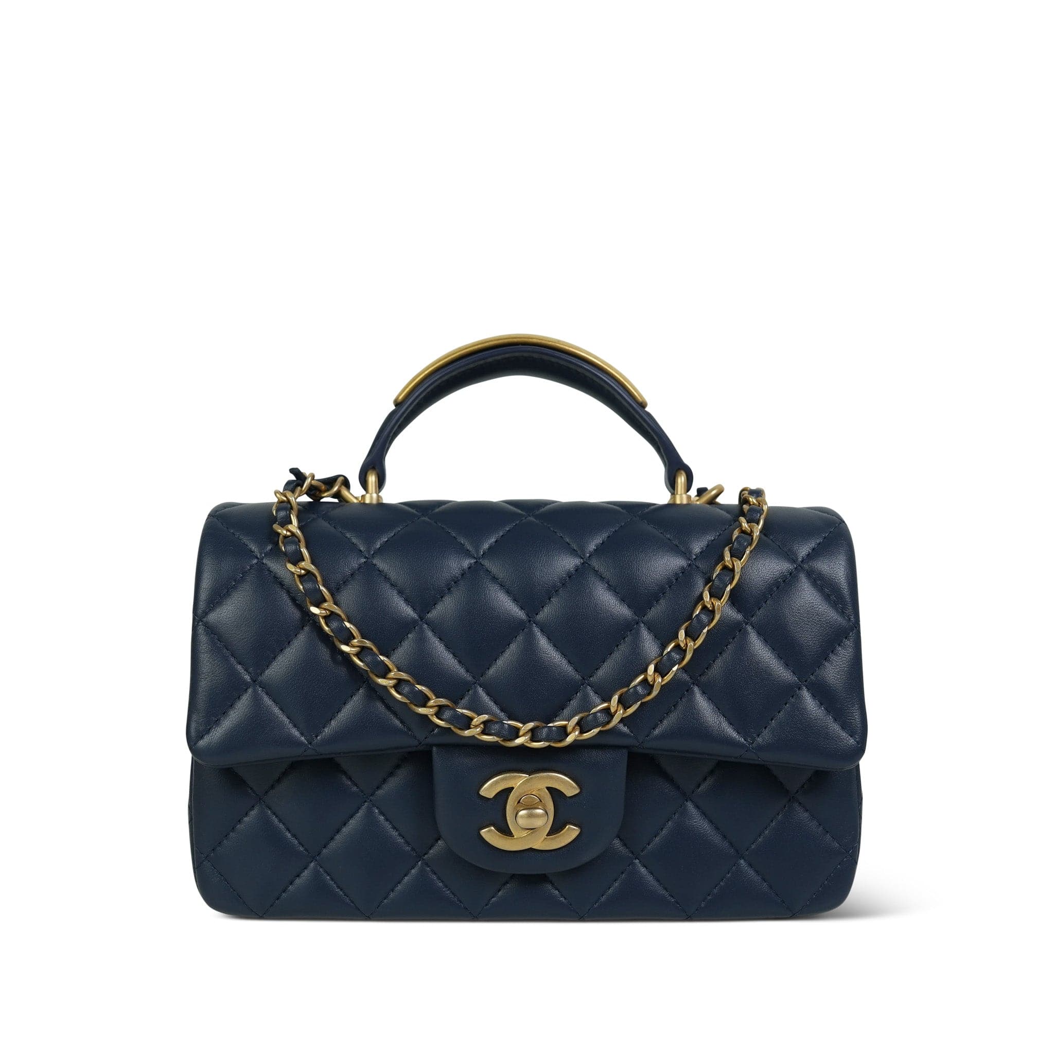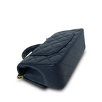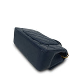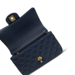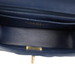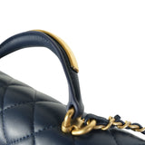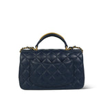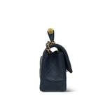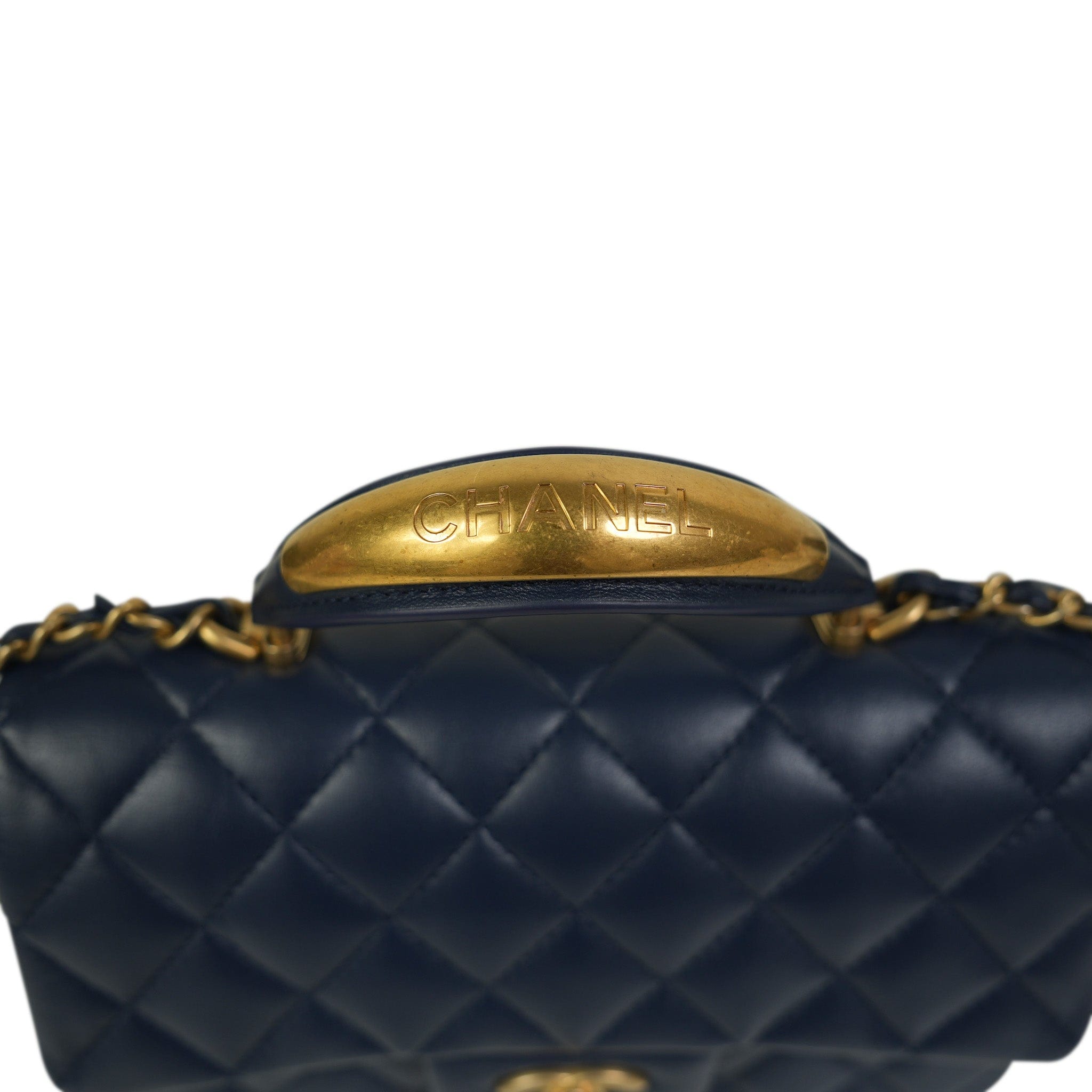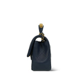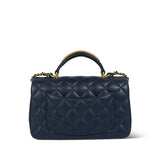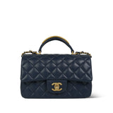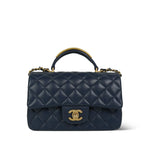 22B Navy Lambskin Quilted Logo Engraved Mini Top Handle Aged Gold Hardware