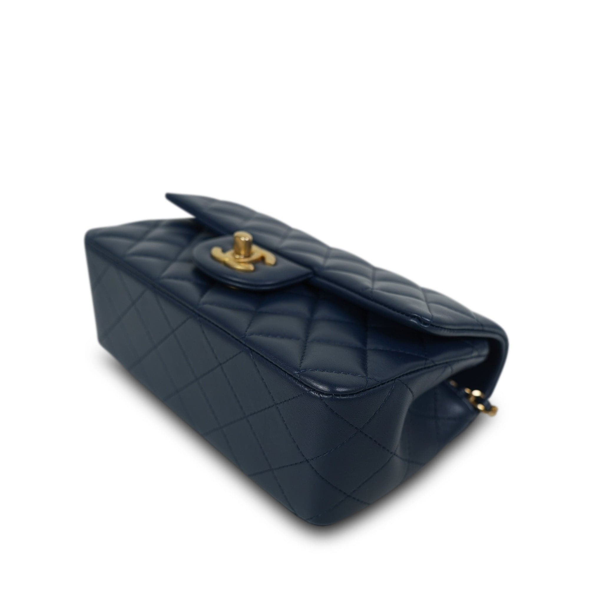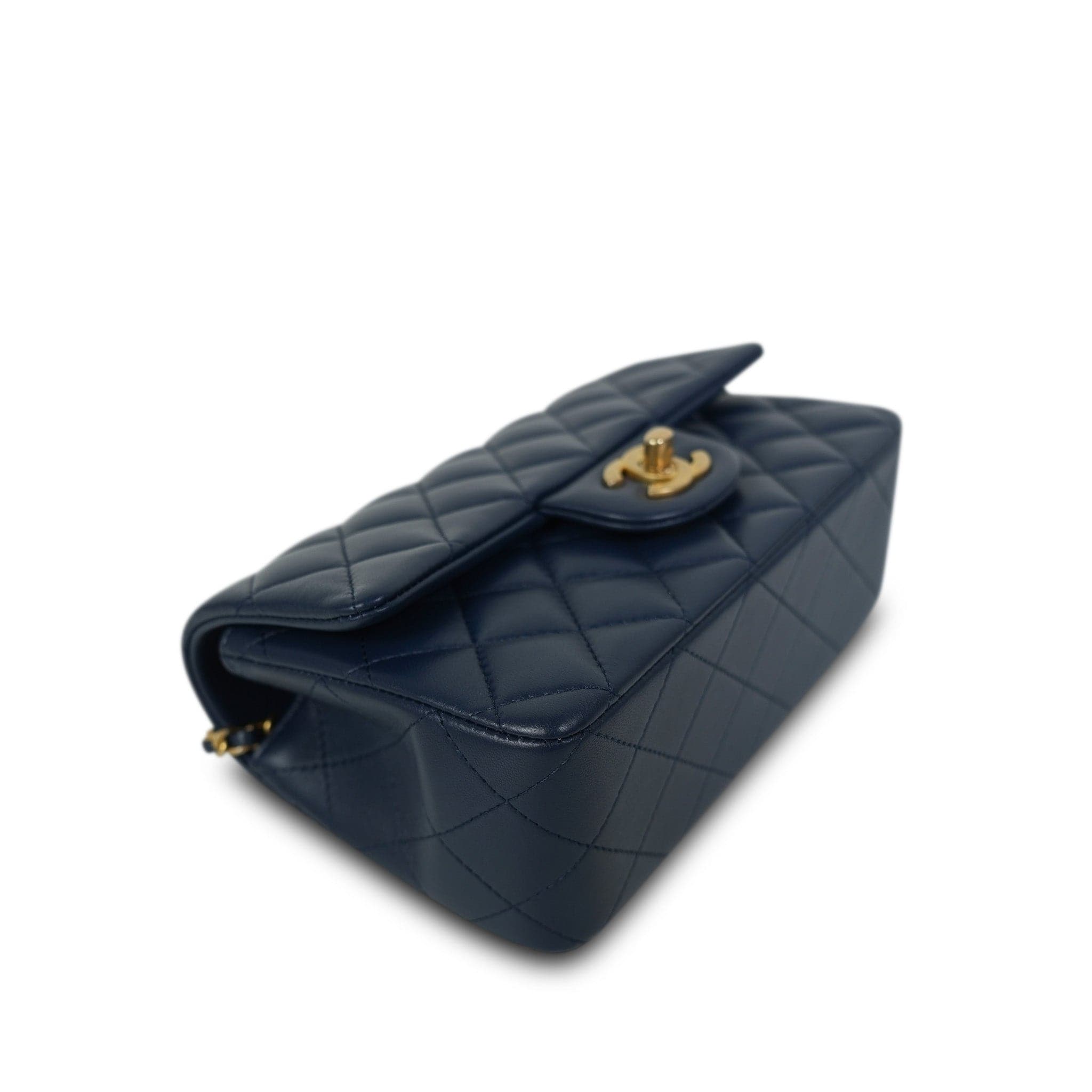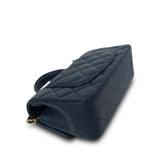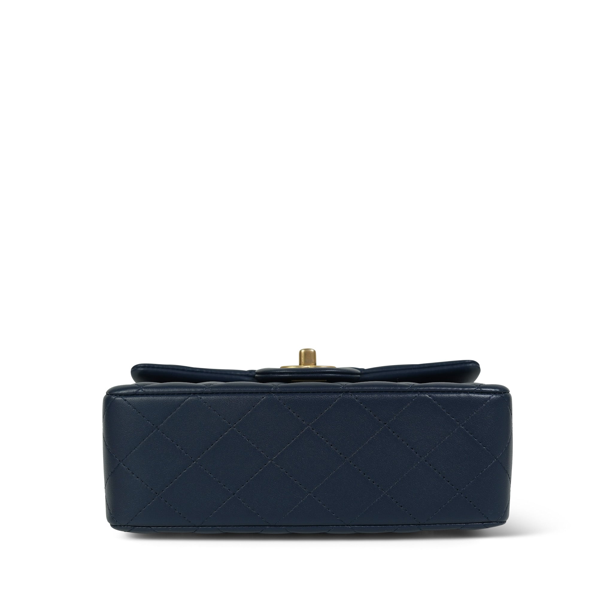 22B Navy Lambskin Quilted Logo Engraved Mini Top Handle Aged Gold Hardware