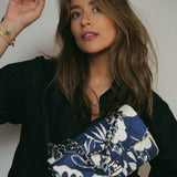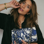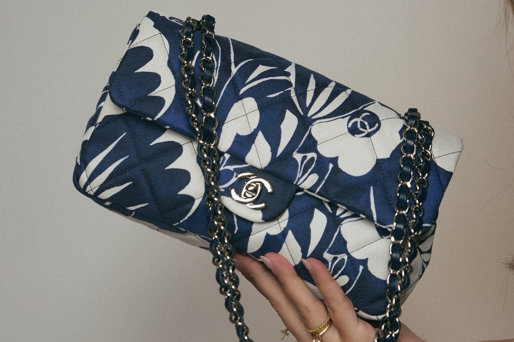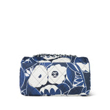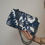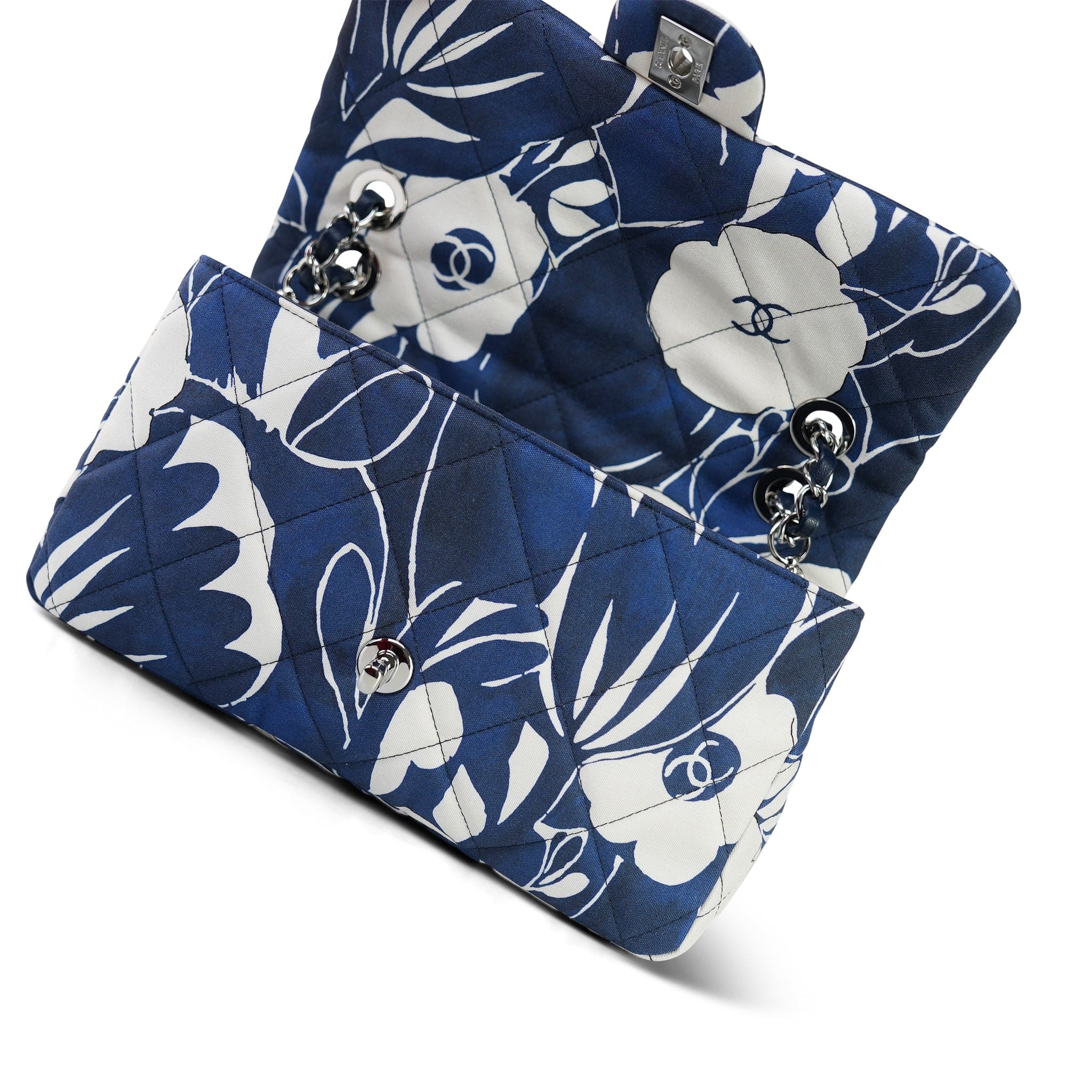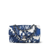 22B Navy/White Floral Printed Silk Single Flap Bag Medium Silver Hardware
