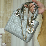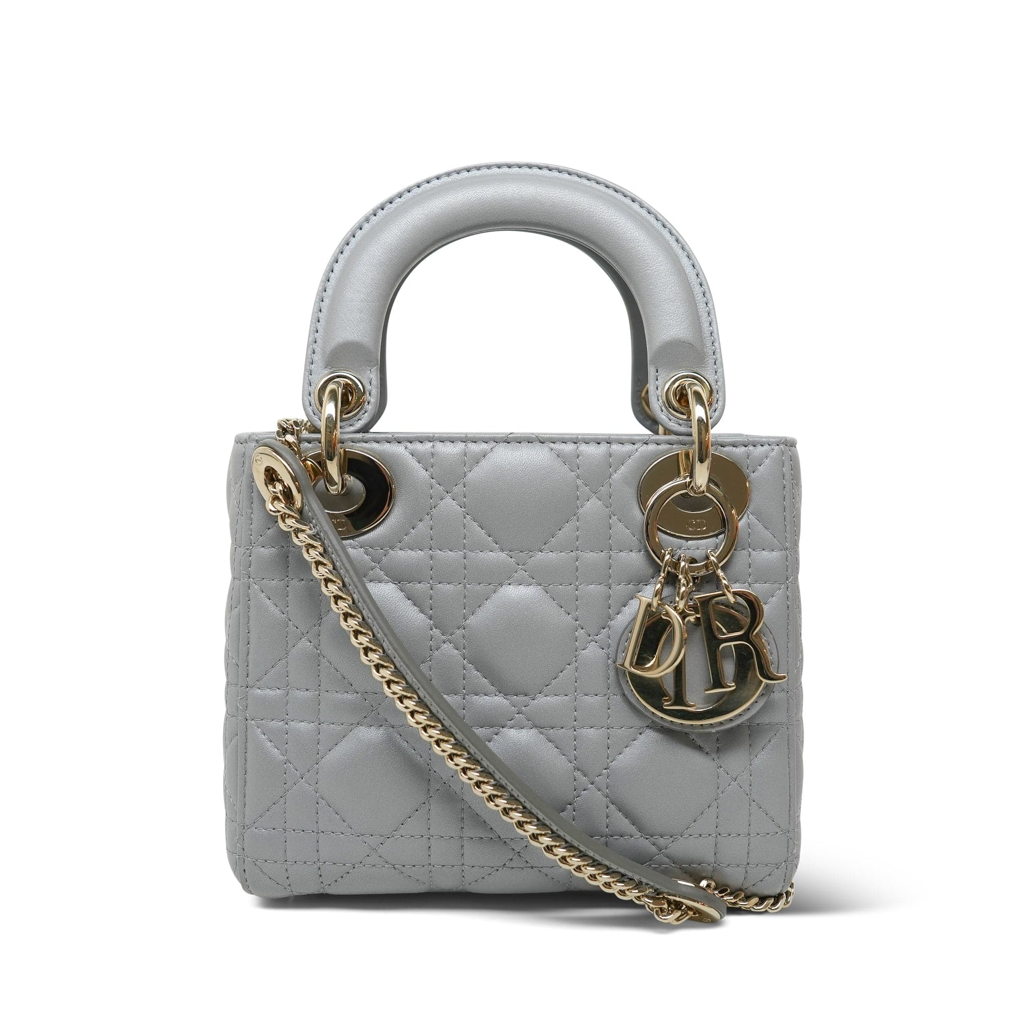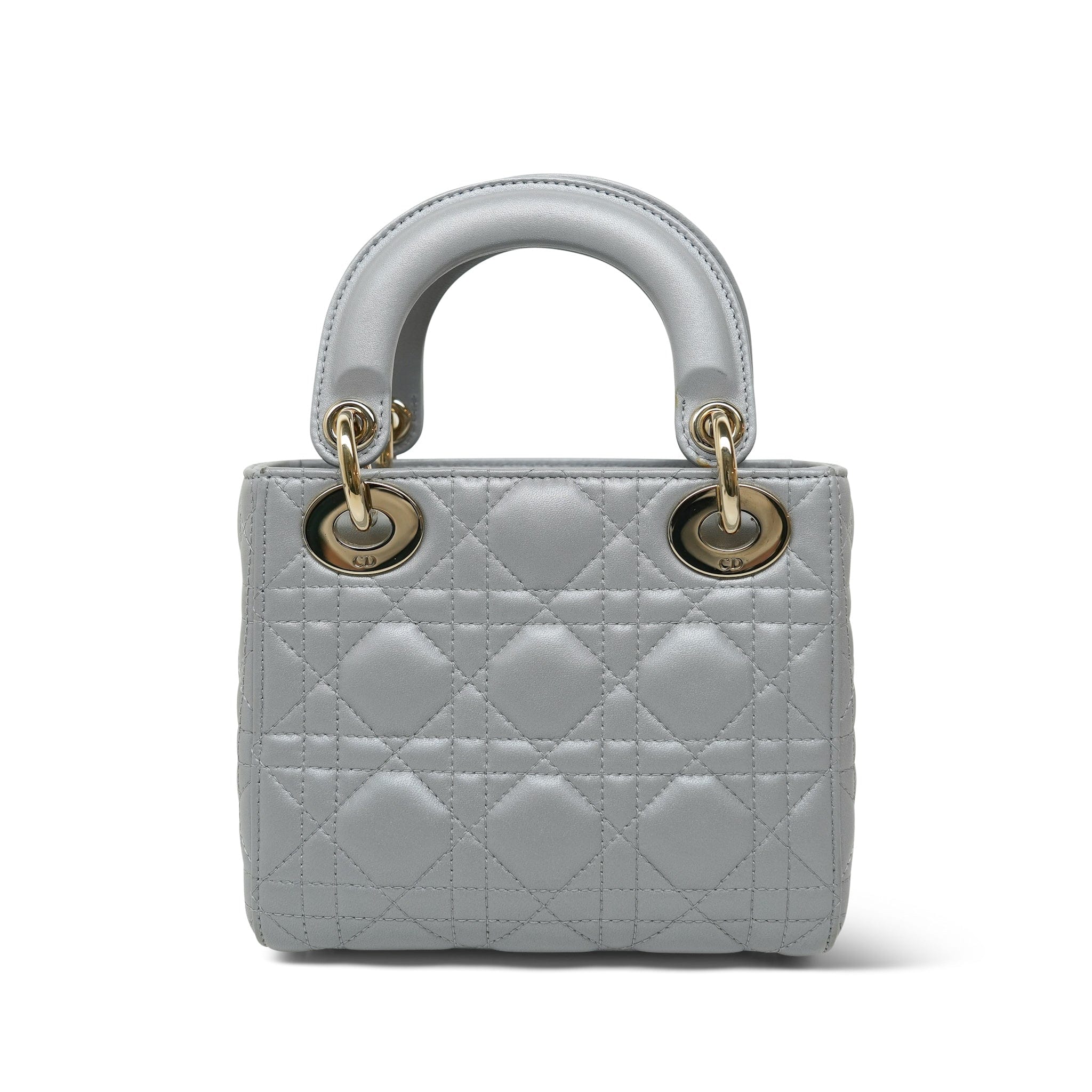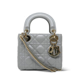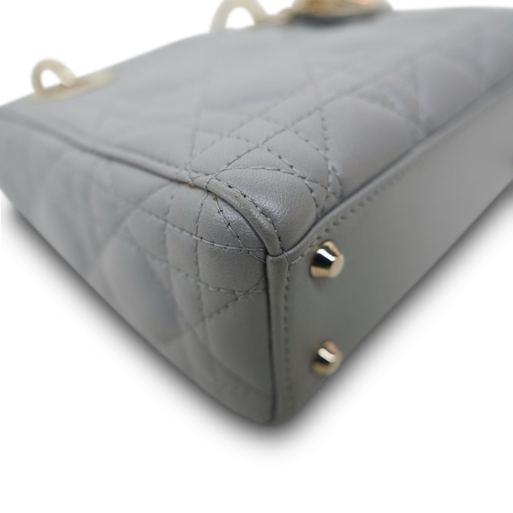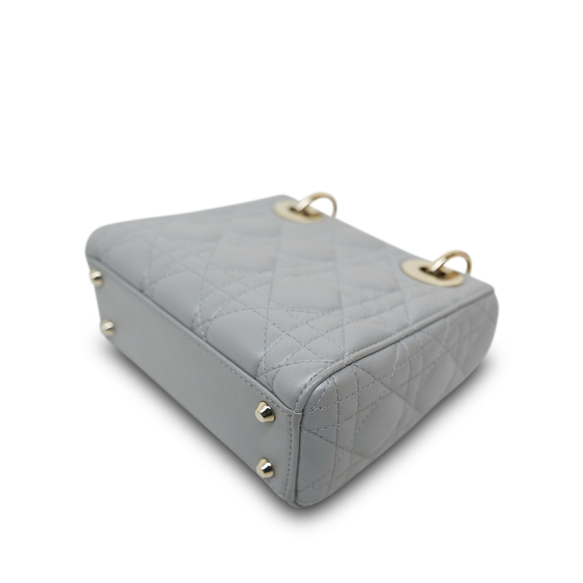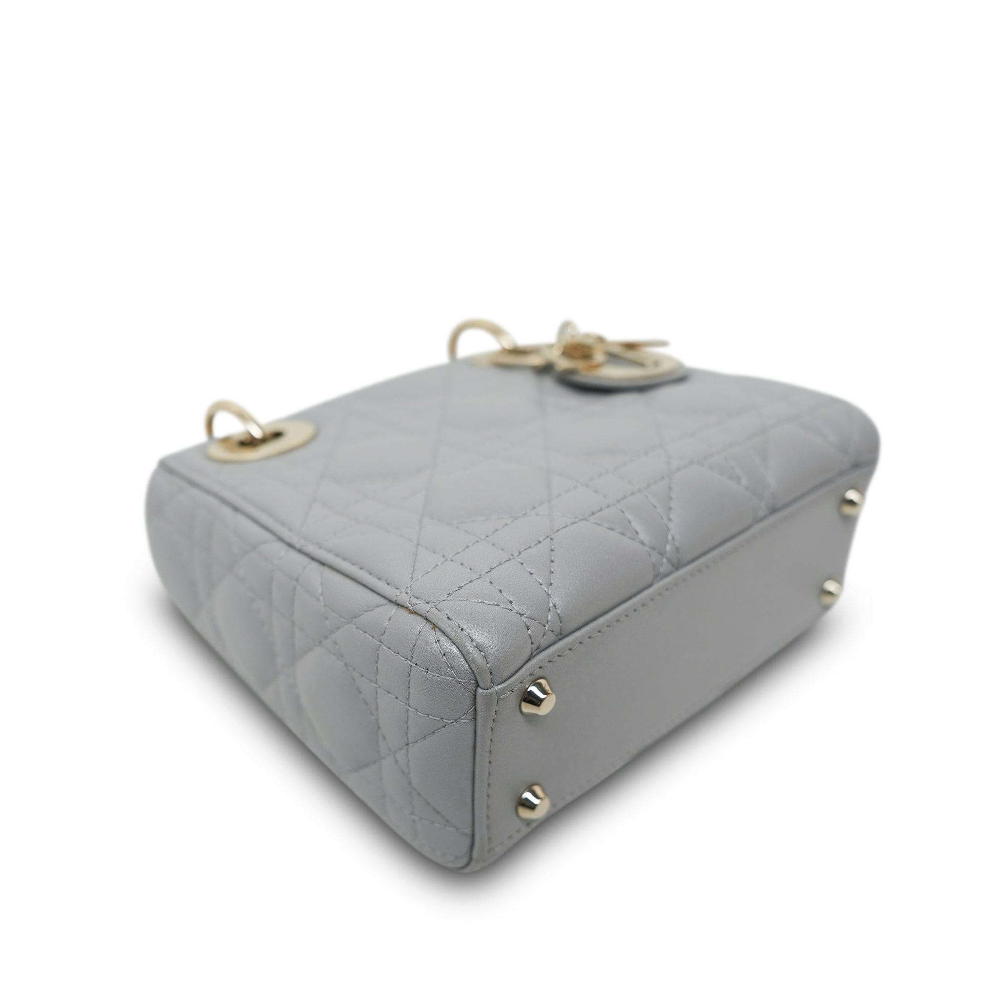 Opaline Gray Pearlescent Cannage Lambskin Lady Dior Mini LGHW
