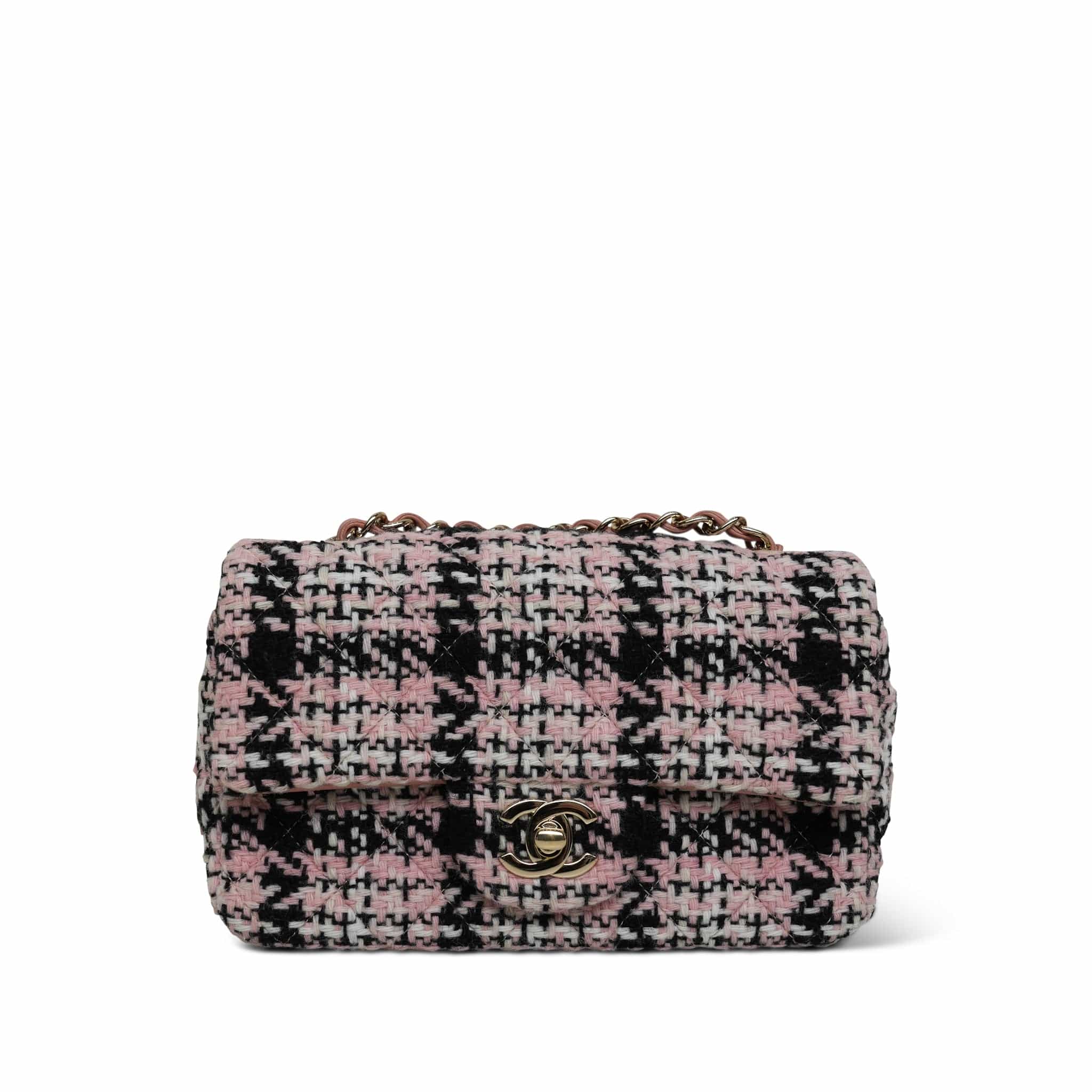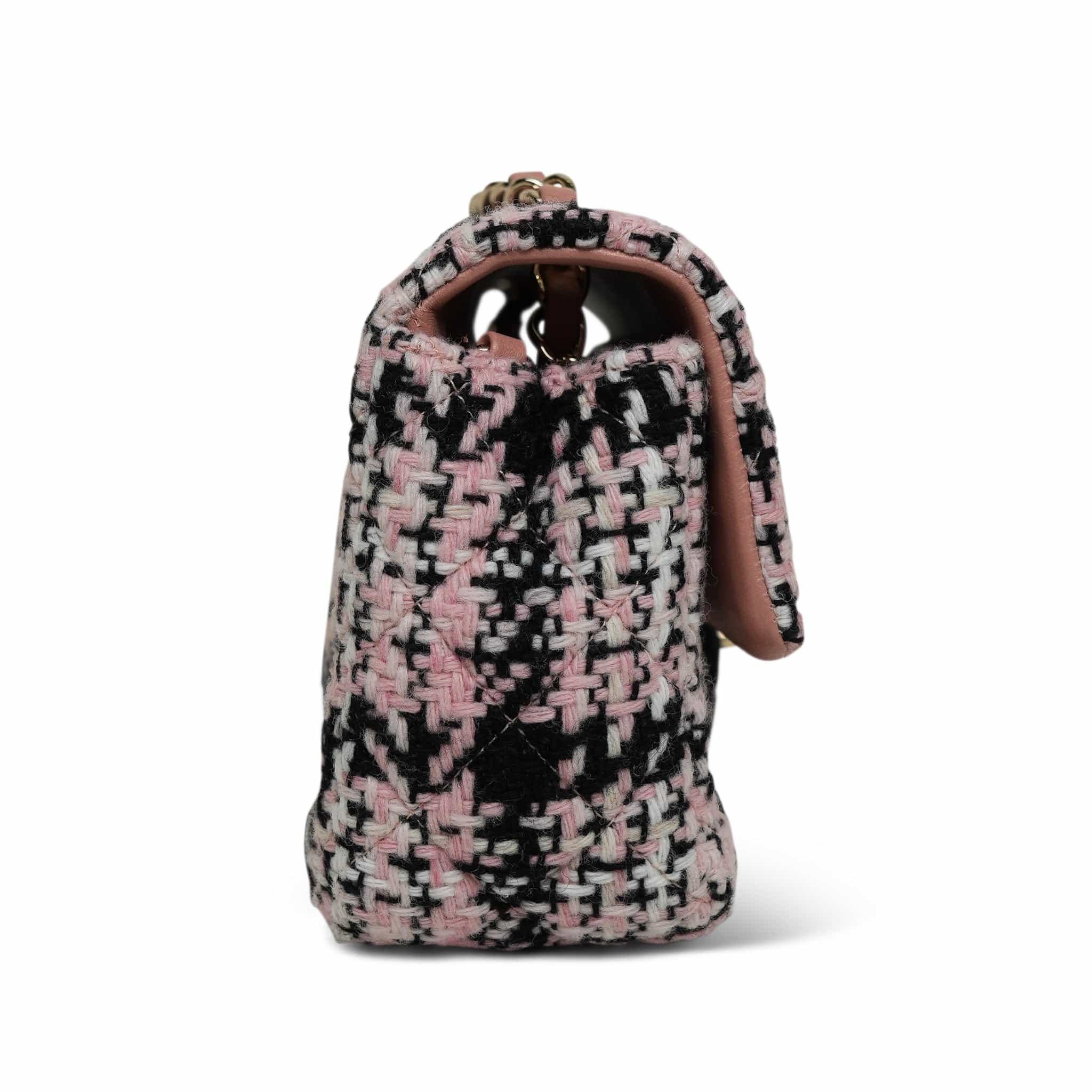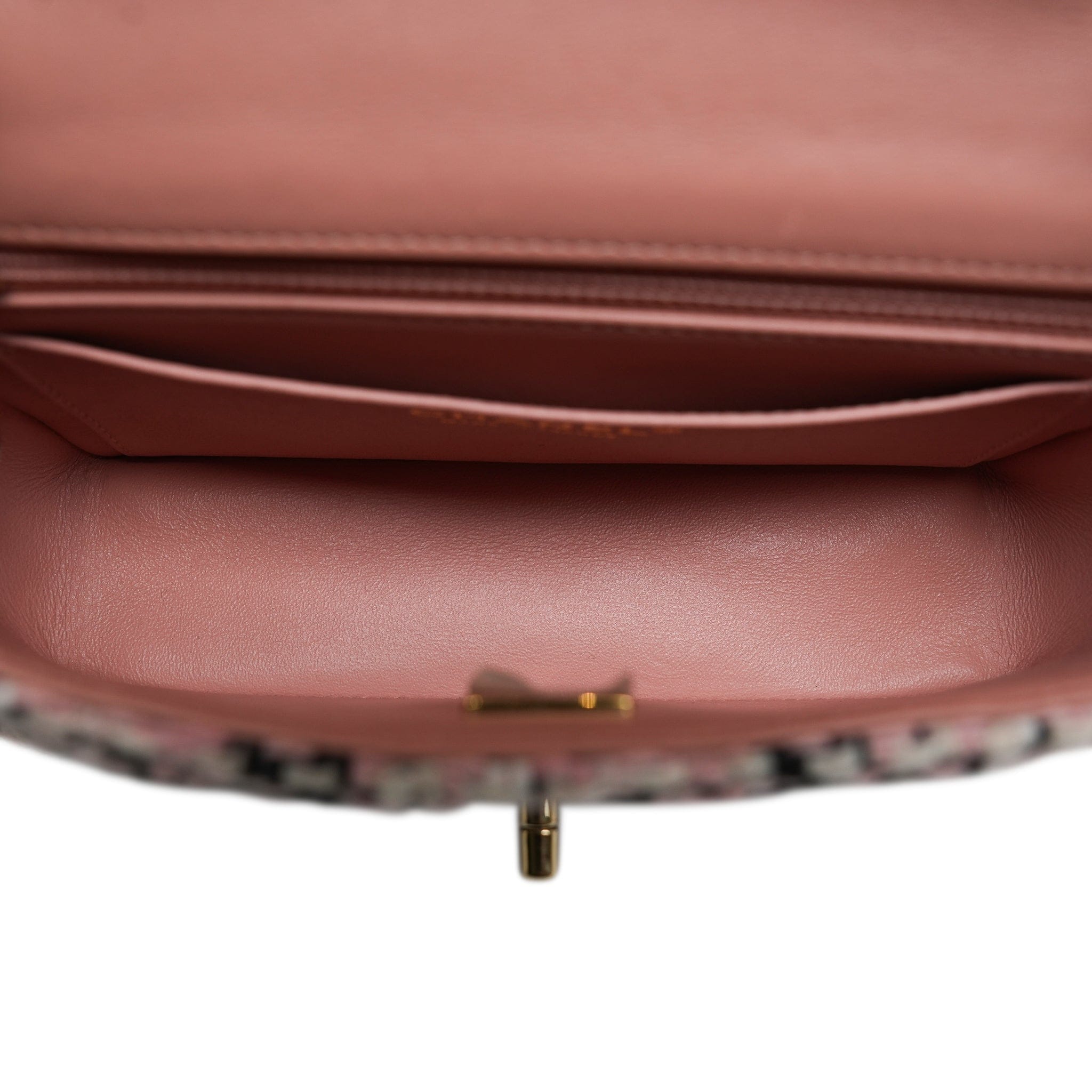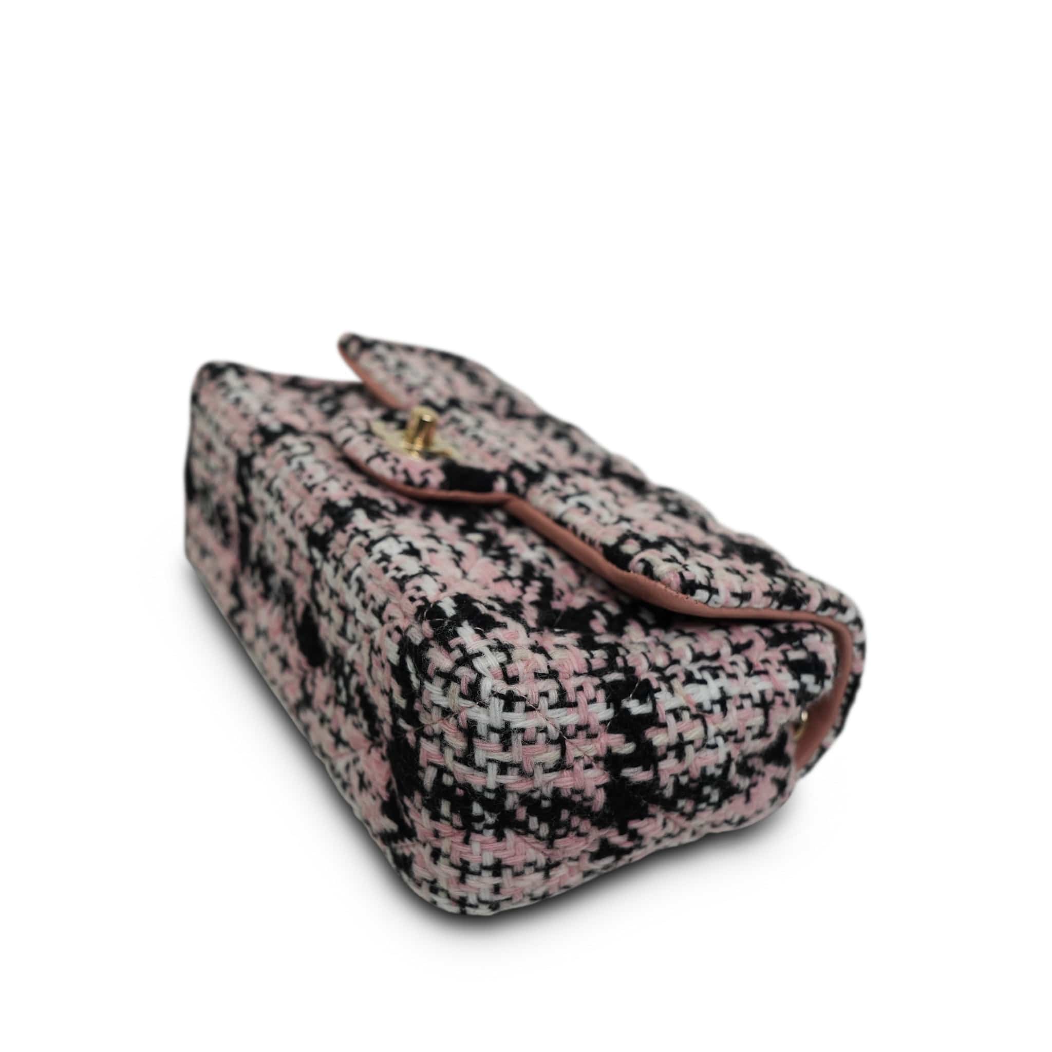 Pink Multicolor Tweed Quilted Mini Rectangular Flap LGHW