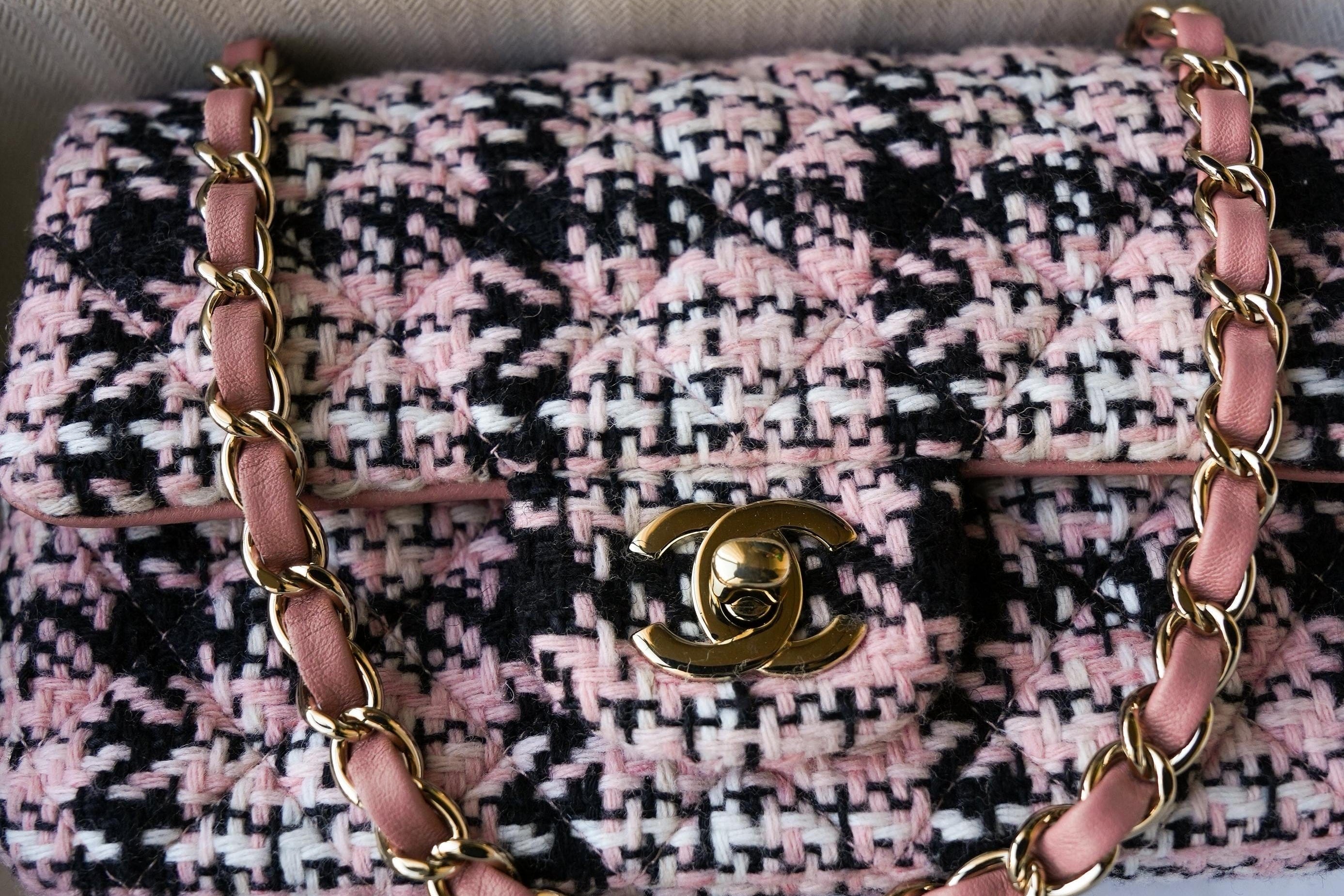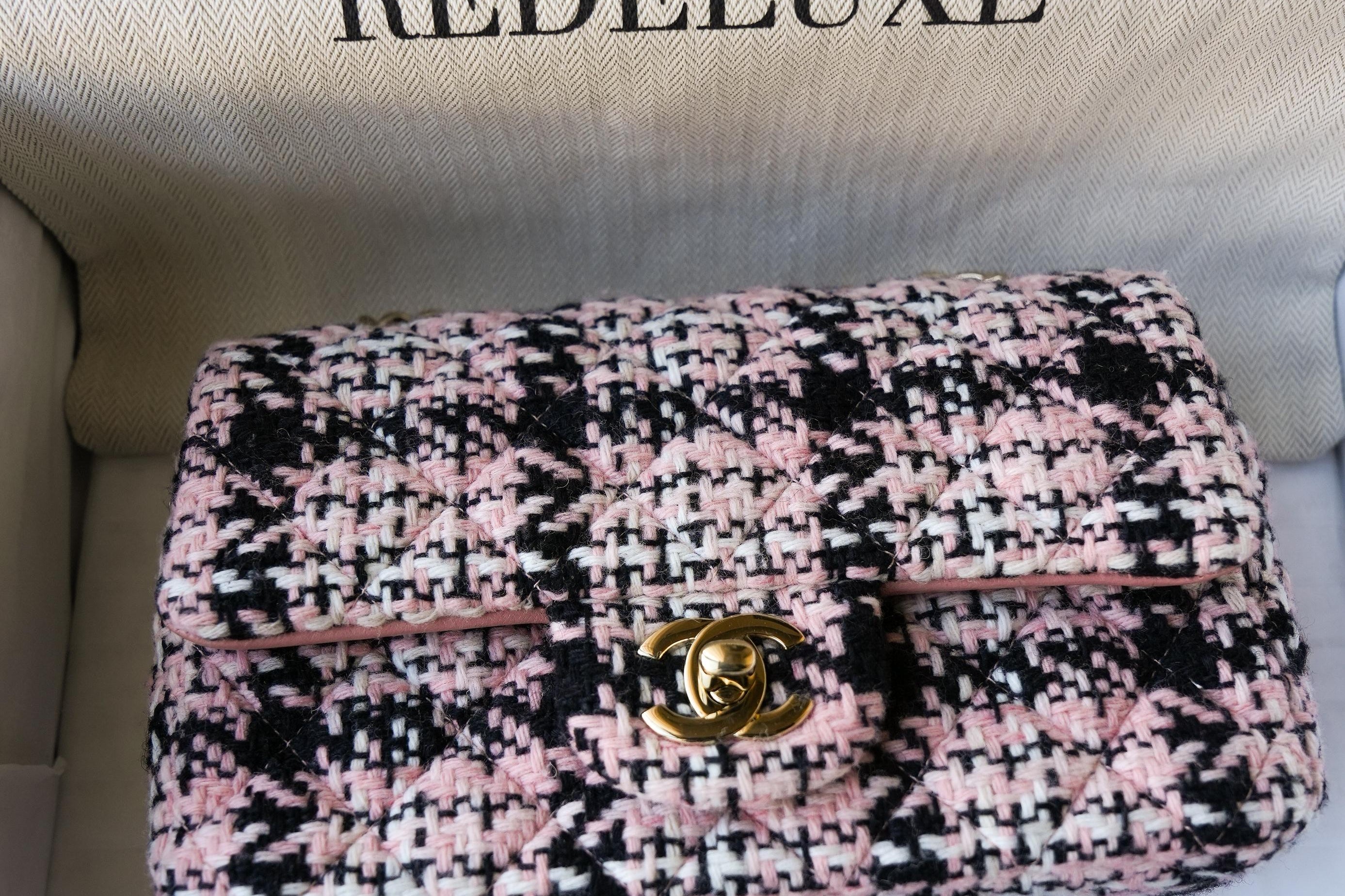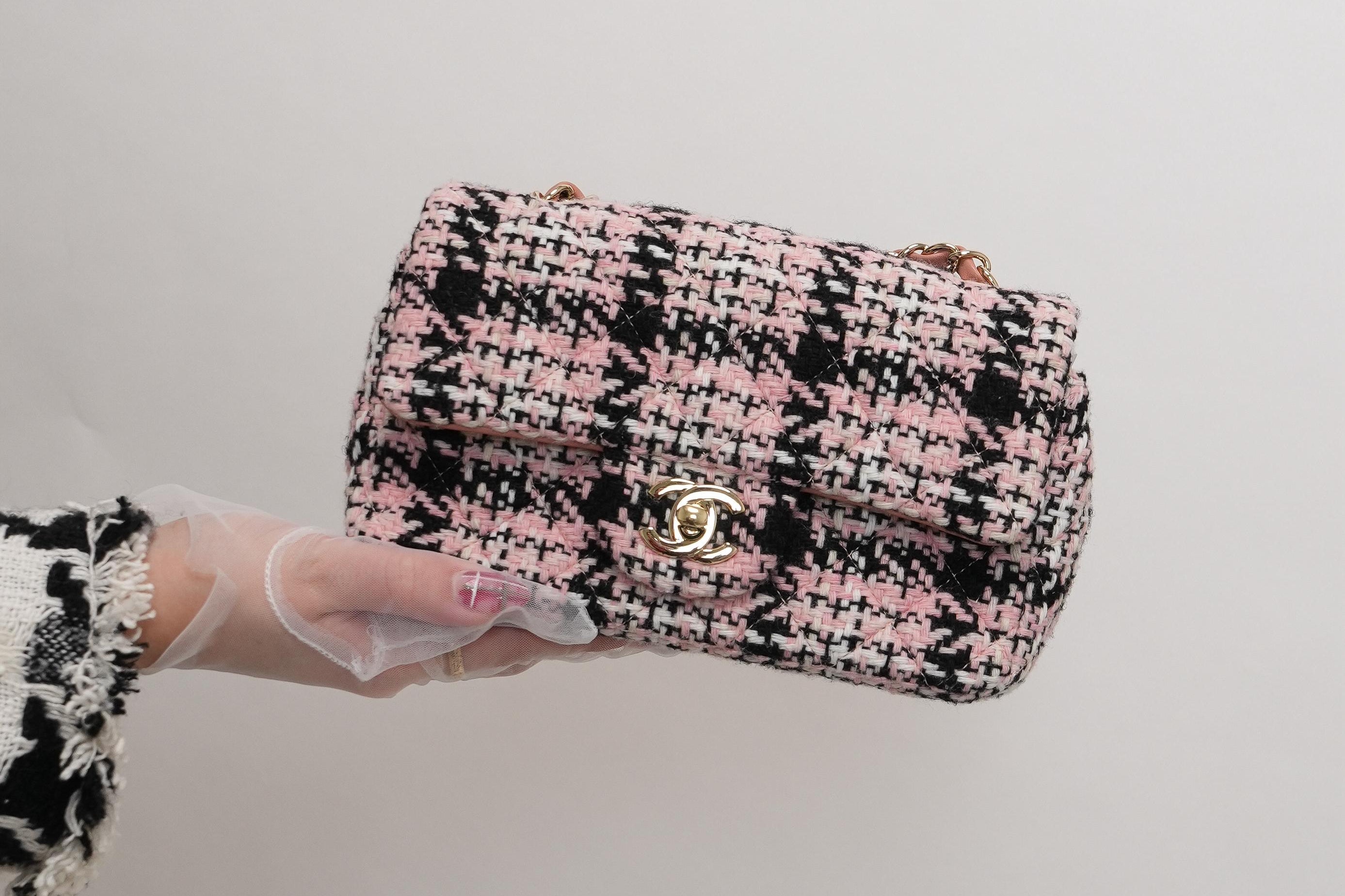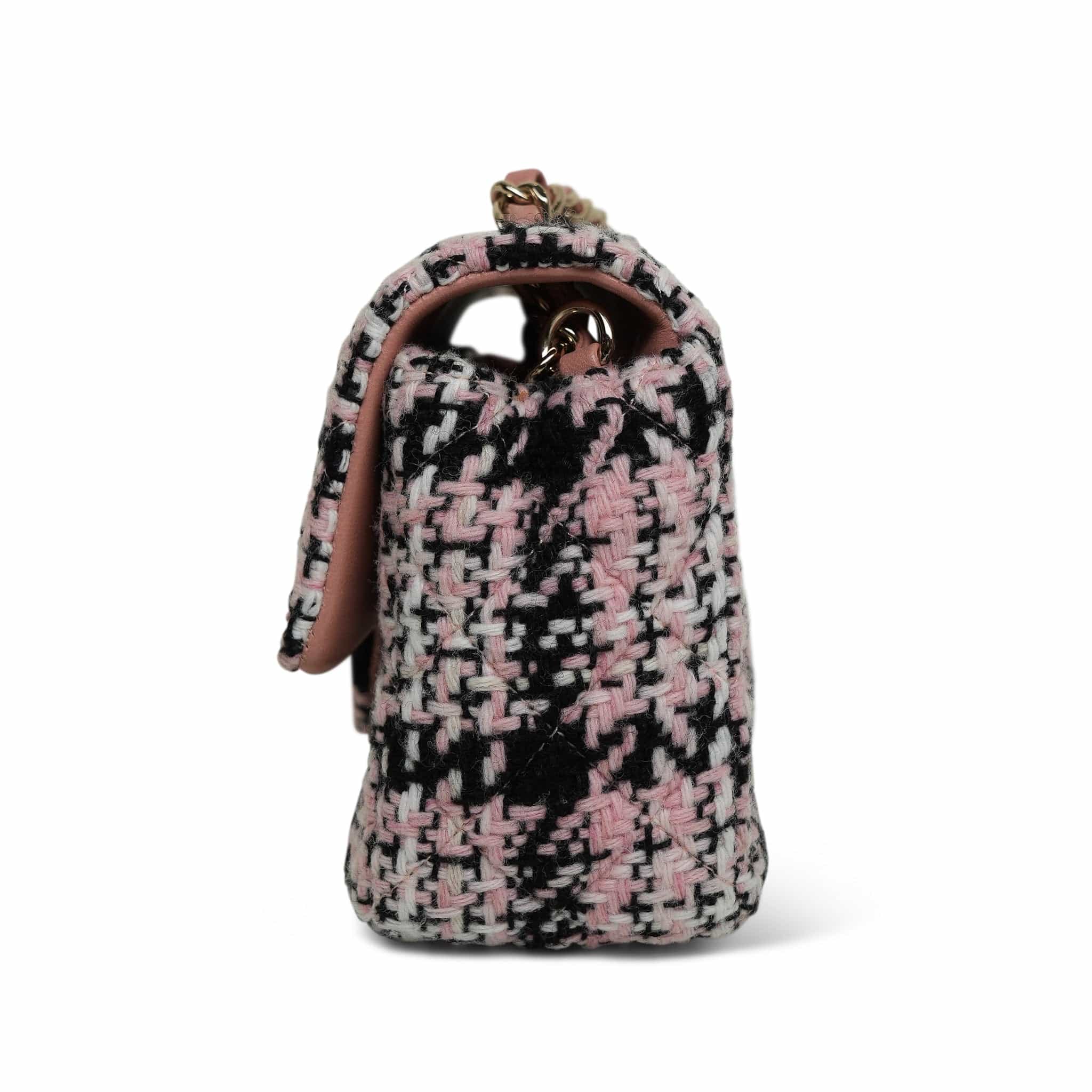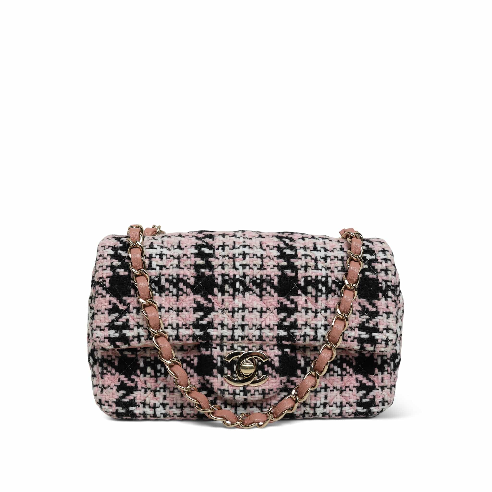 Pink Multicolor Tweed Quilted Mini Rectangular Flap LGHW