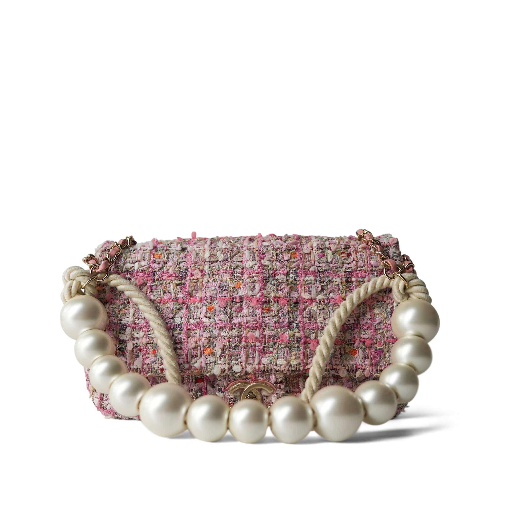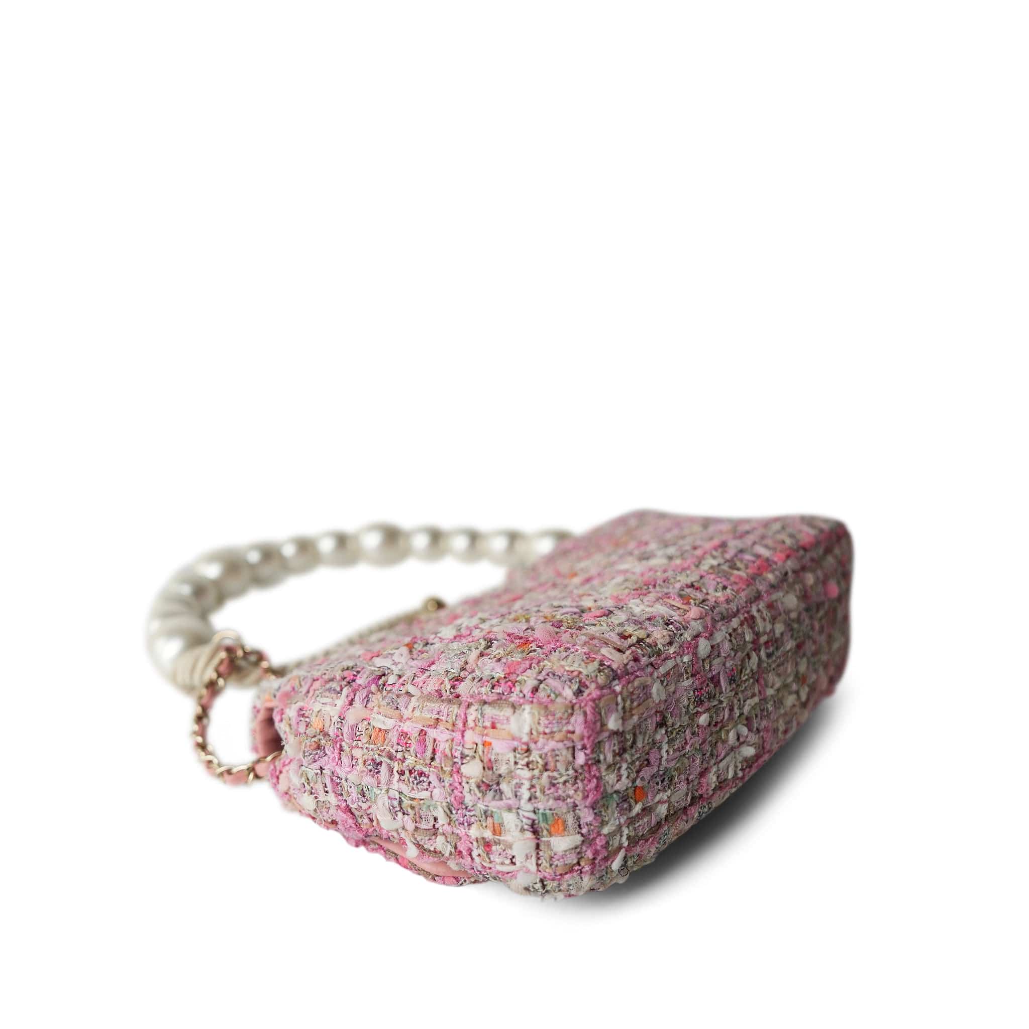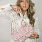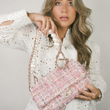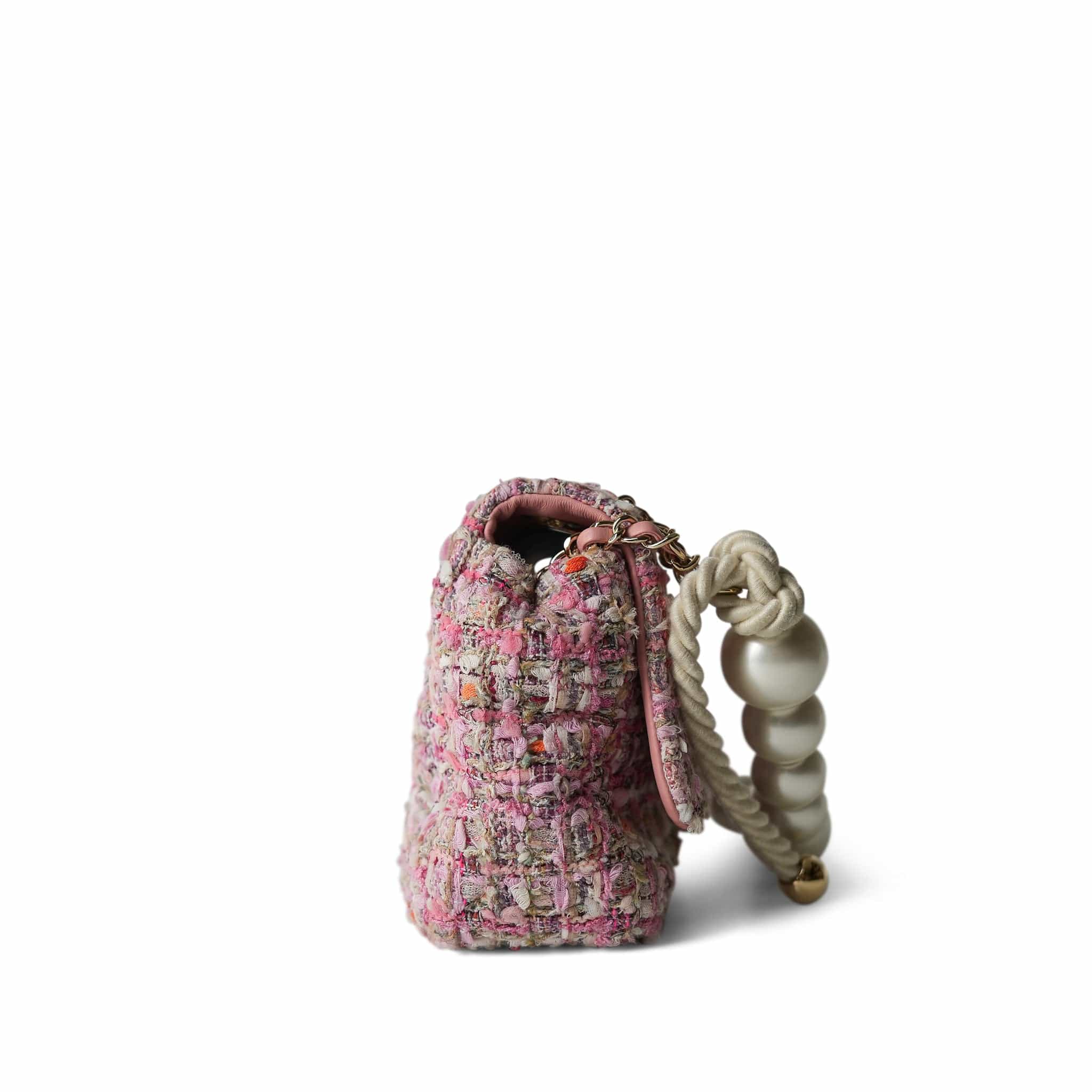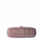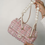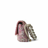 Pink Tweed Quilted Pearl Handle Flap Bag Large LGHW