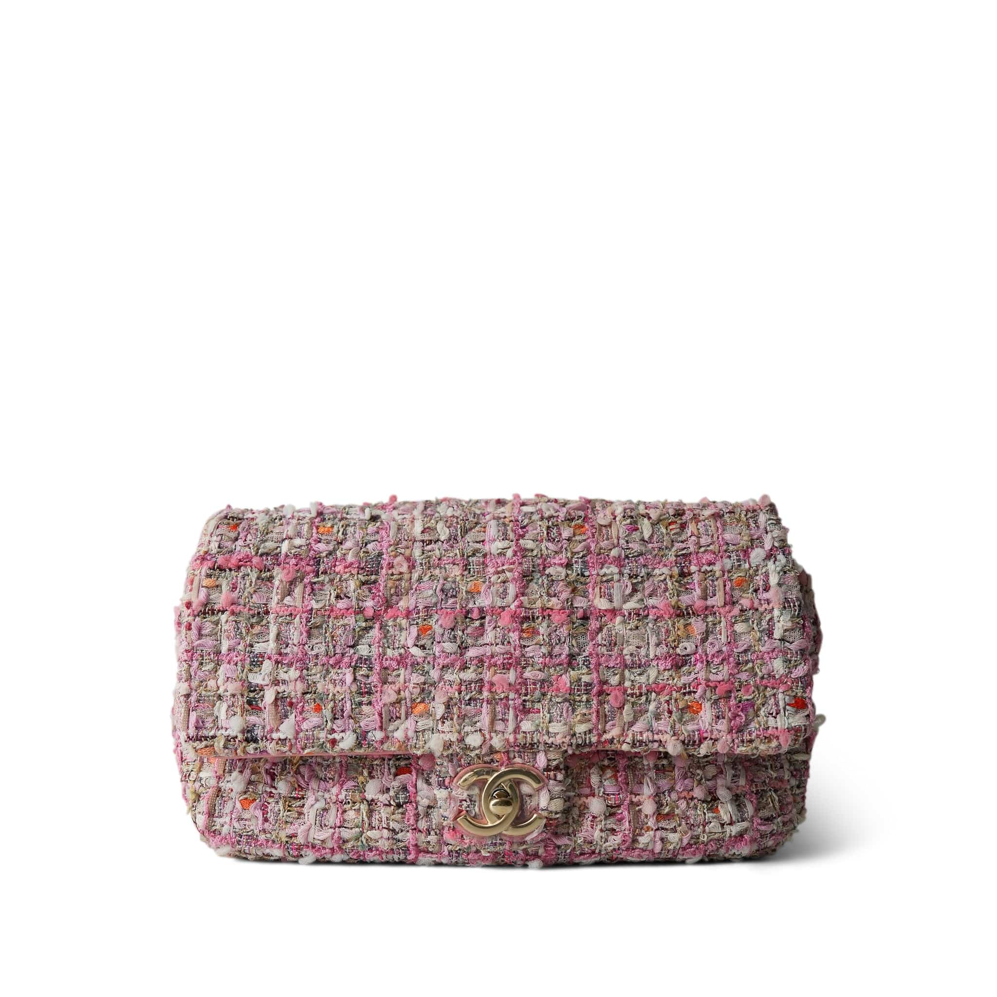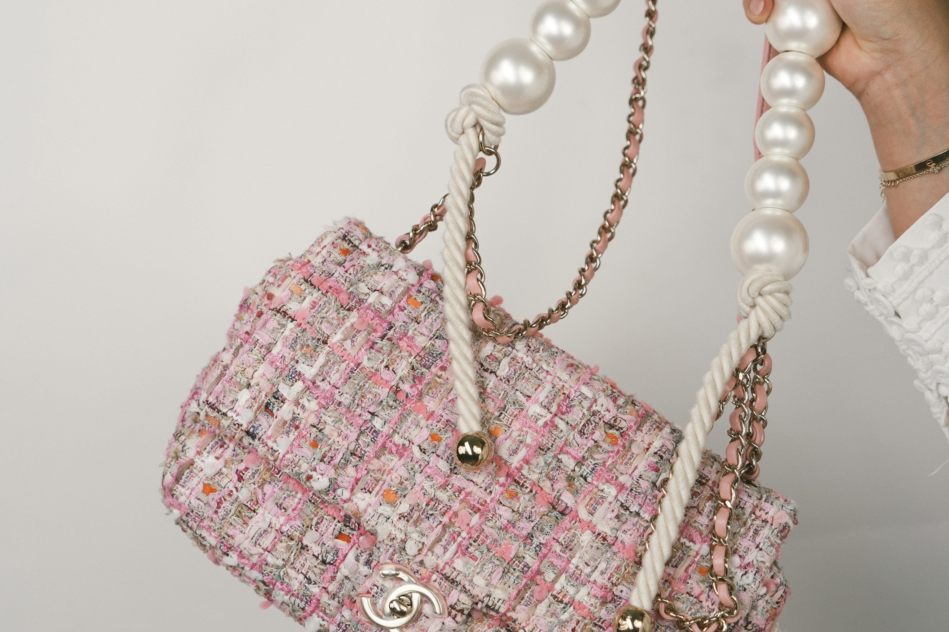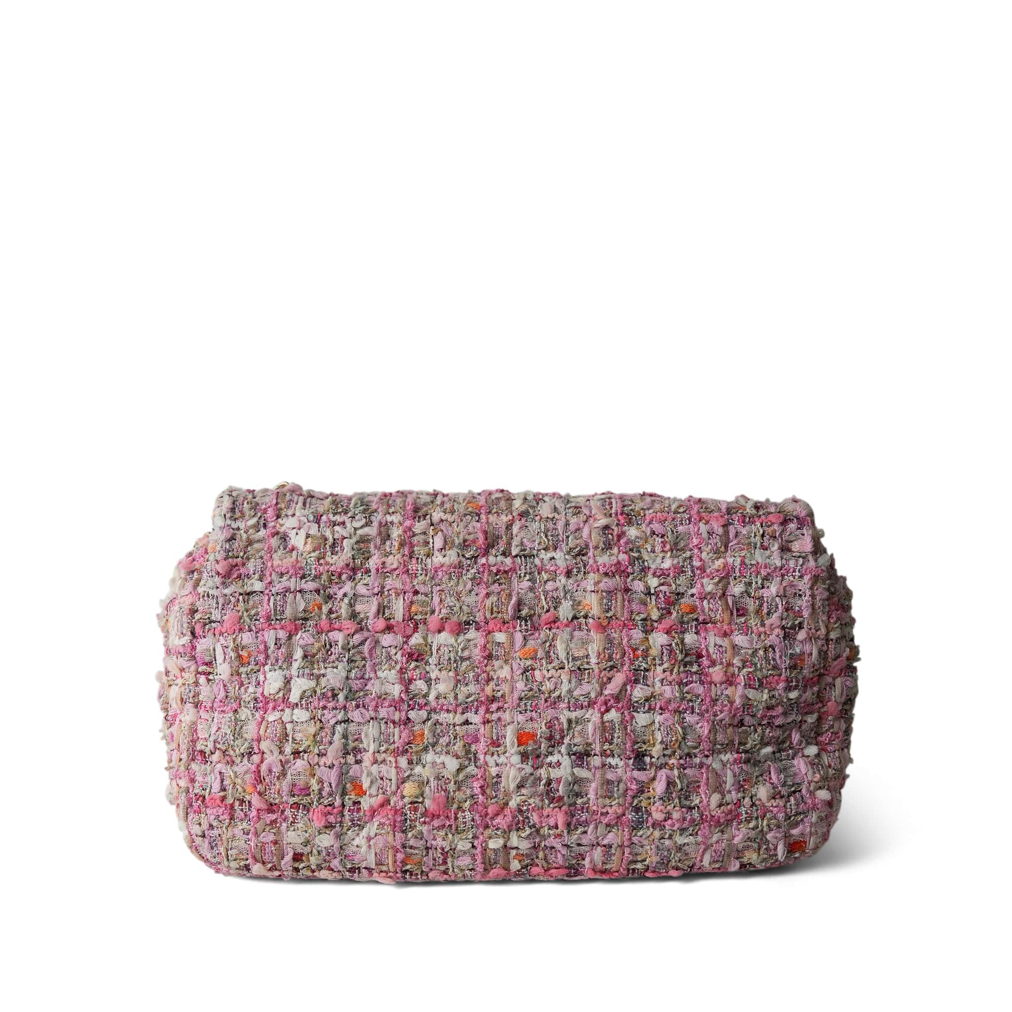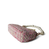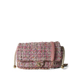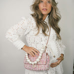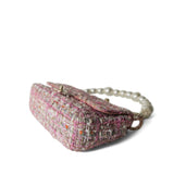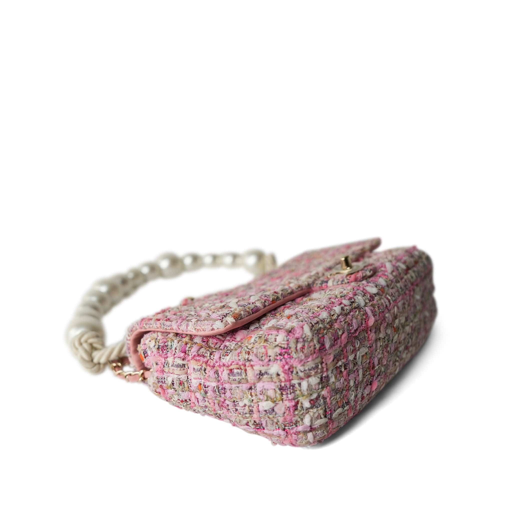 Pink Tweed Quilted Pearl Handle Flap Bag Large LGHW