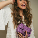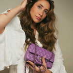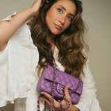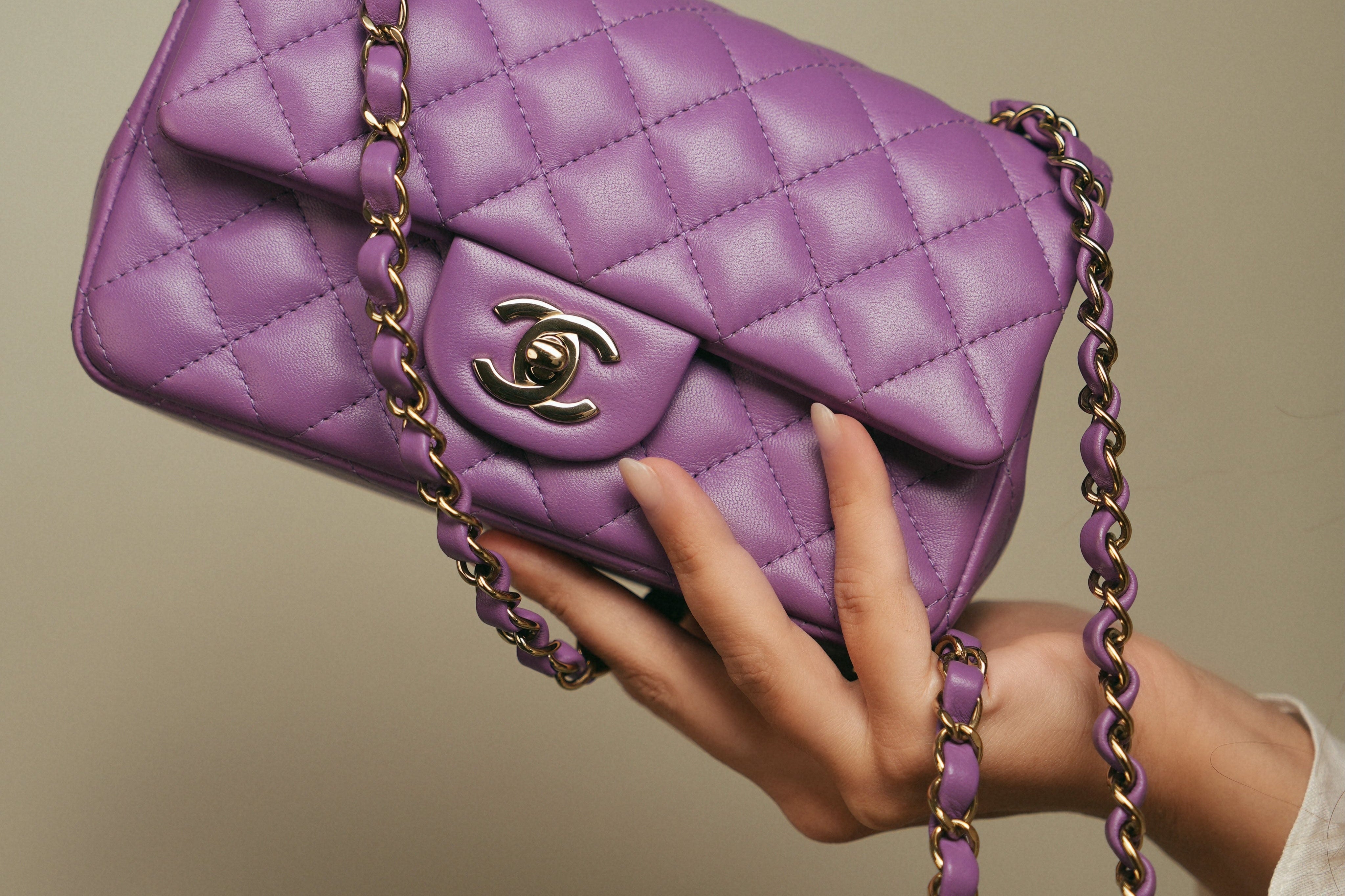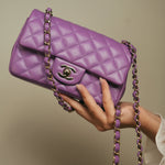 Purple Lambskin Quilted Mini Rectangular Flap Light Gold Hardware