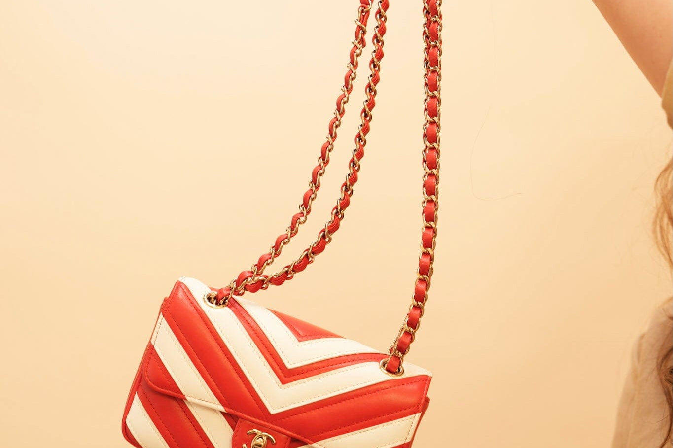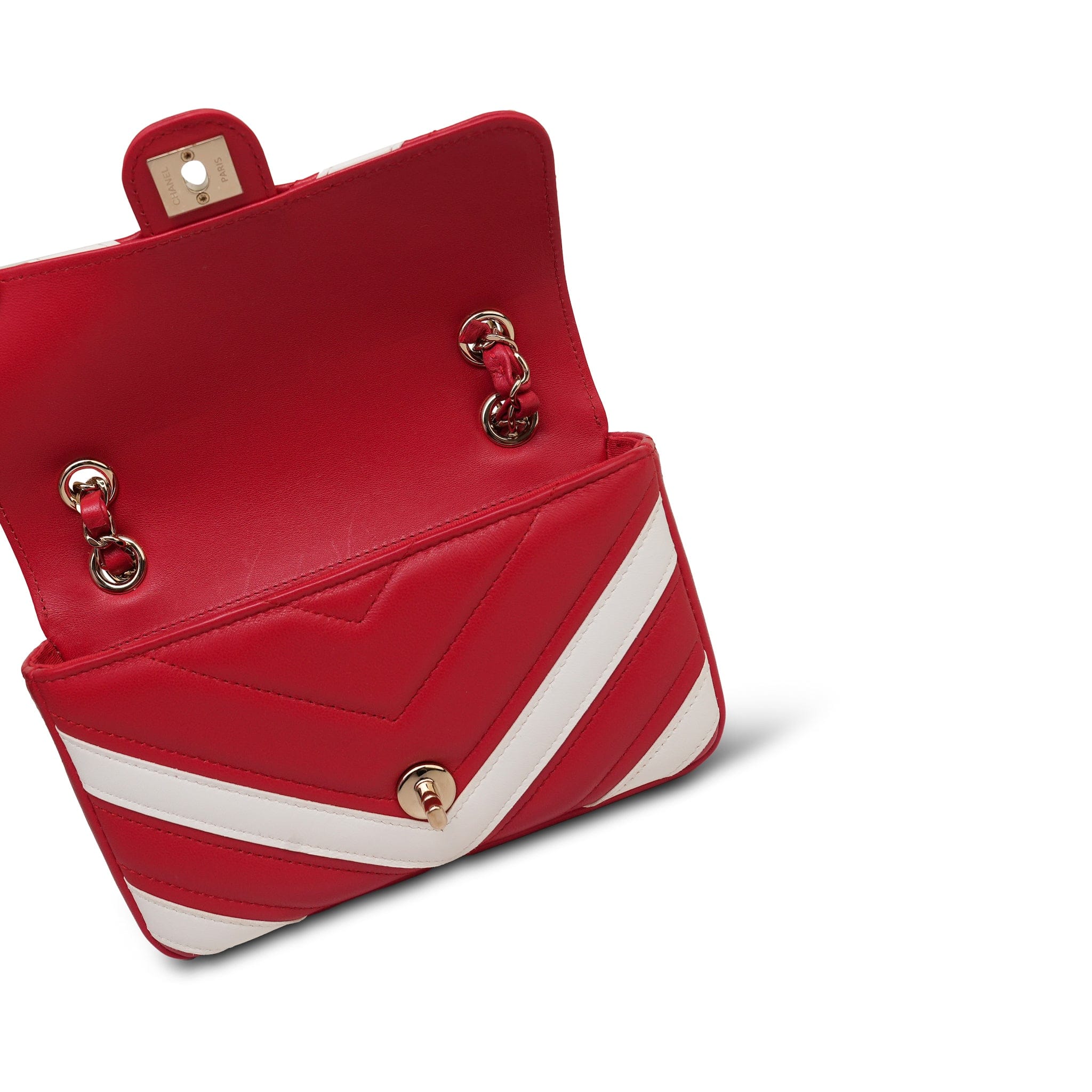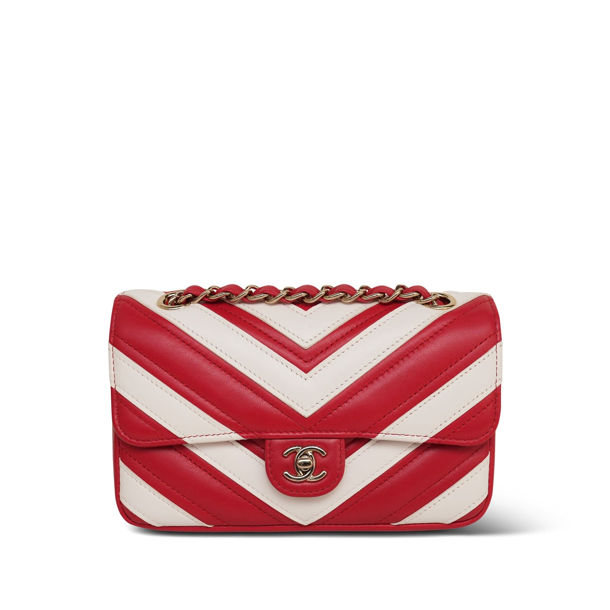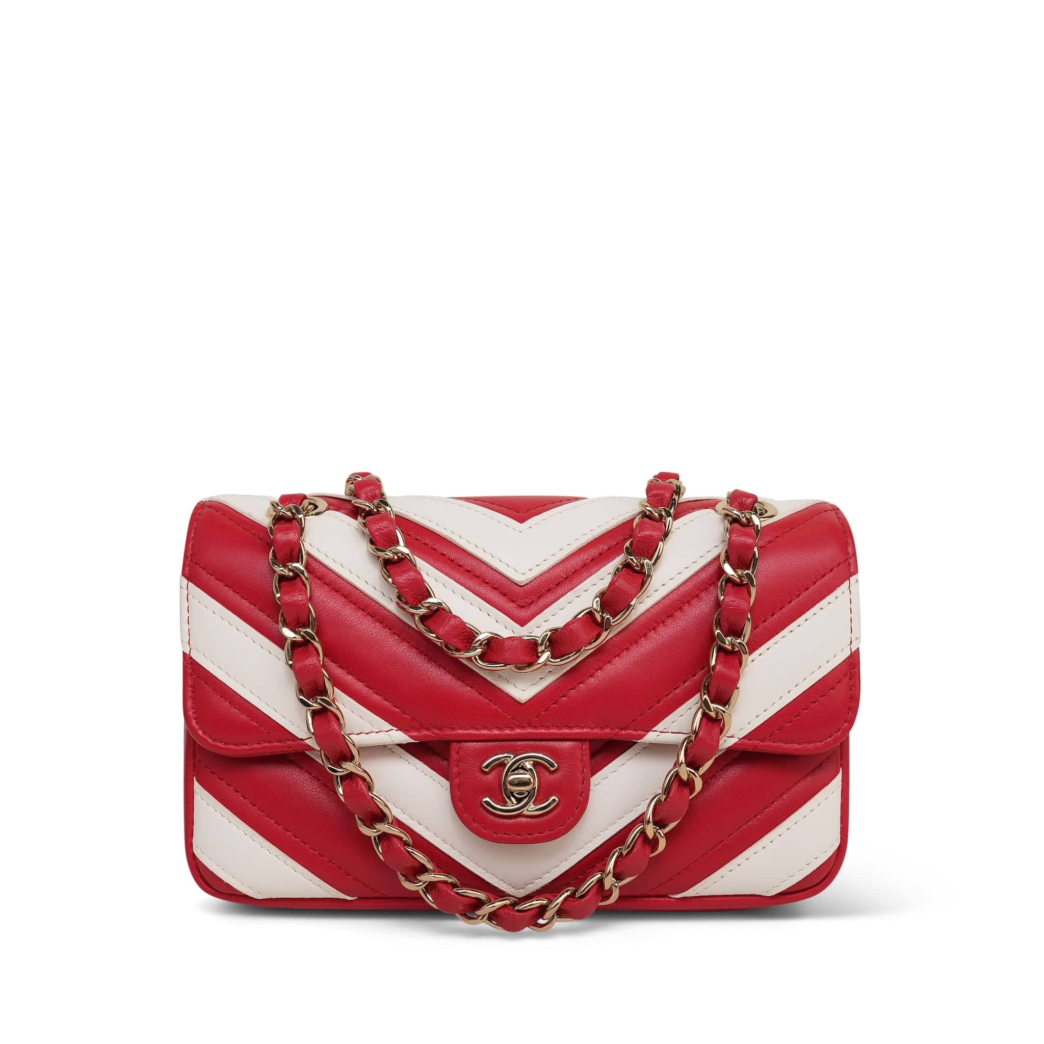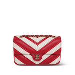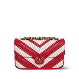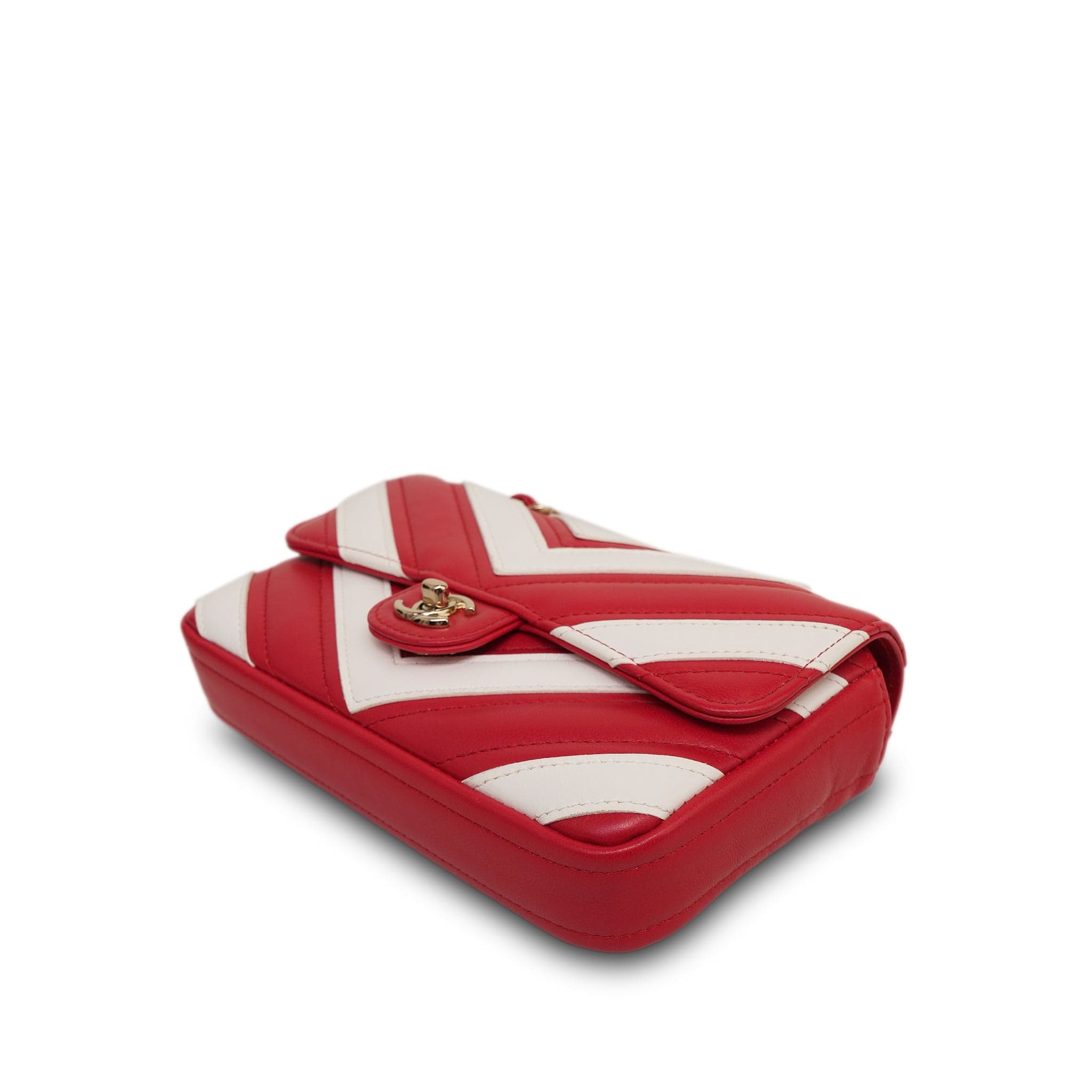 Red White Chevron Lambskin Quilted Mini Single Flap
