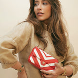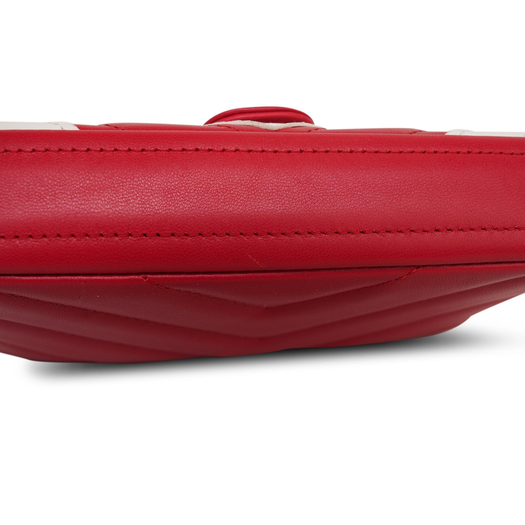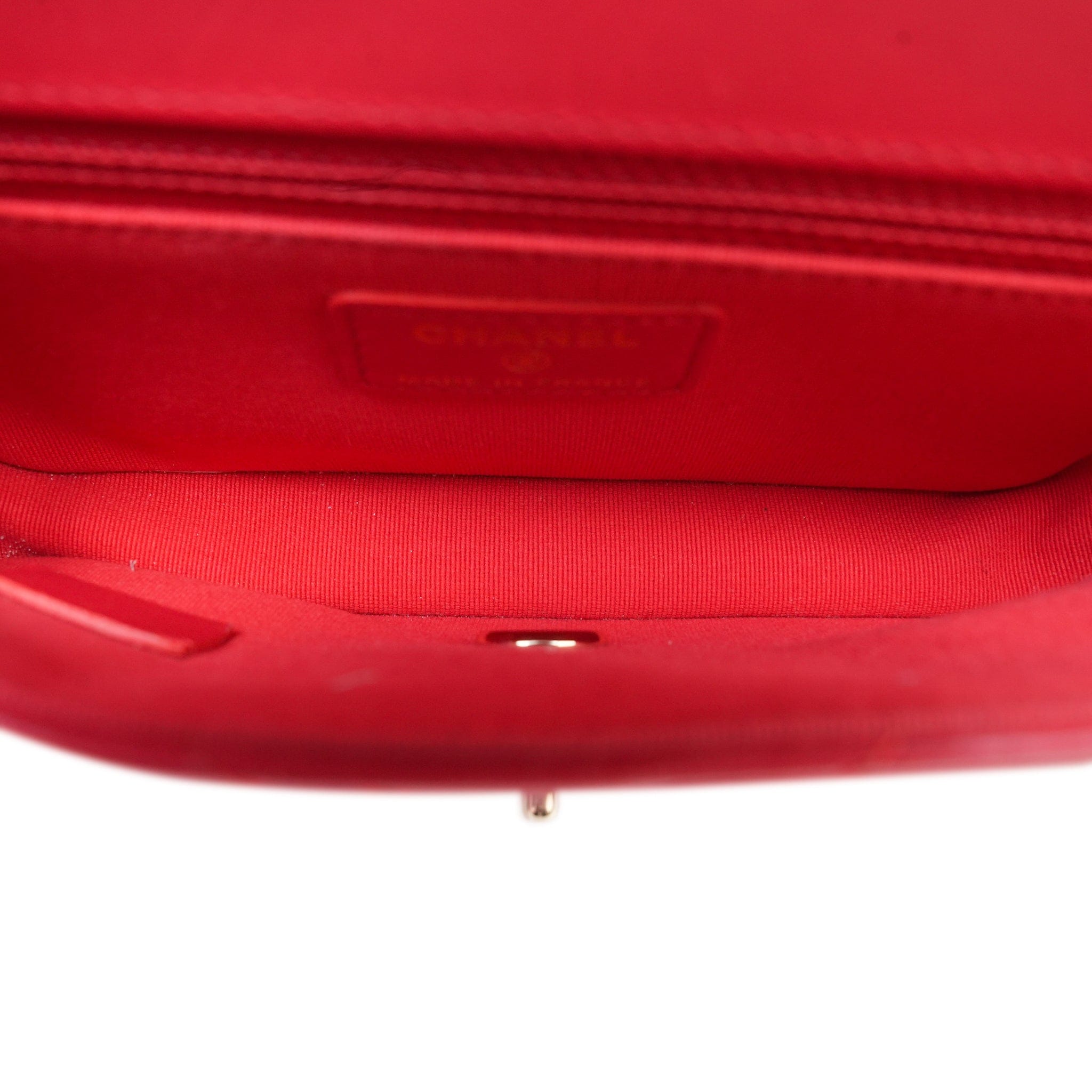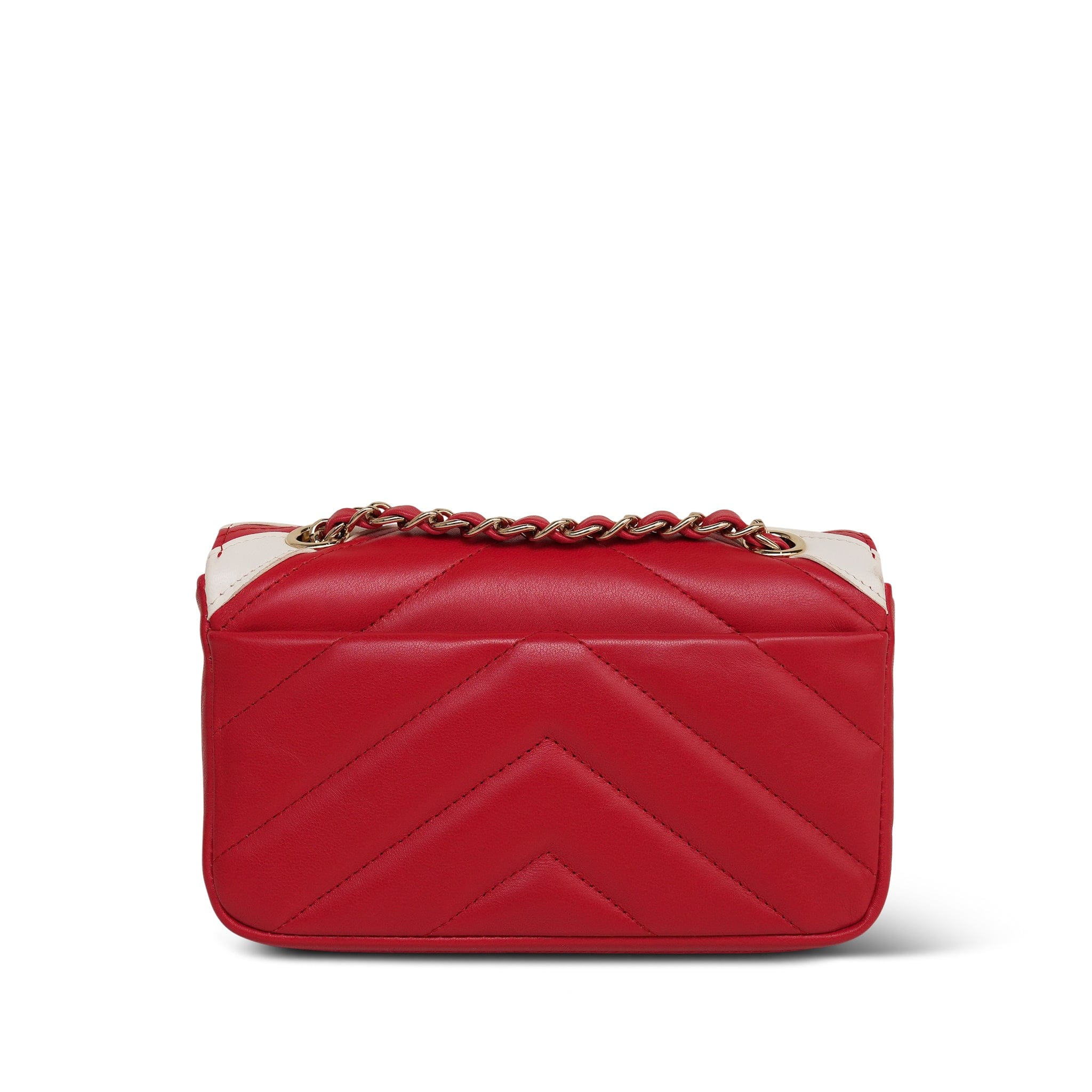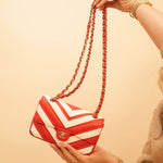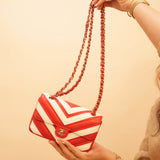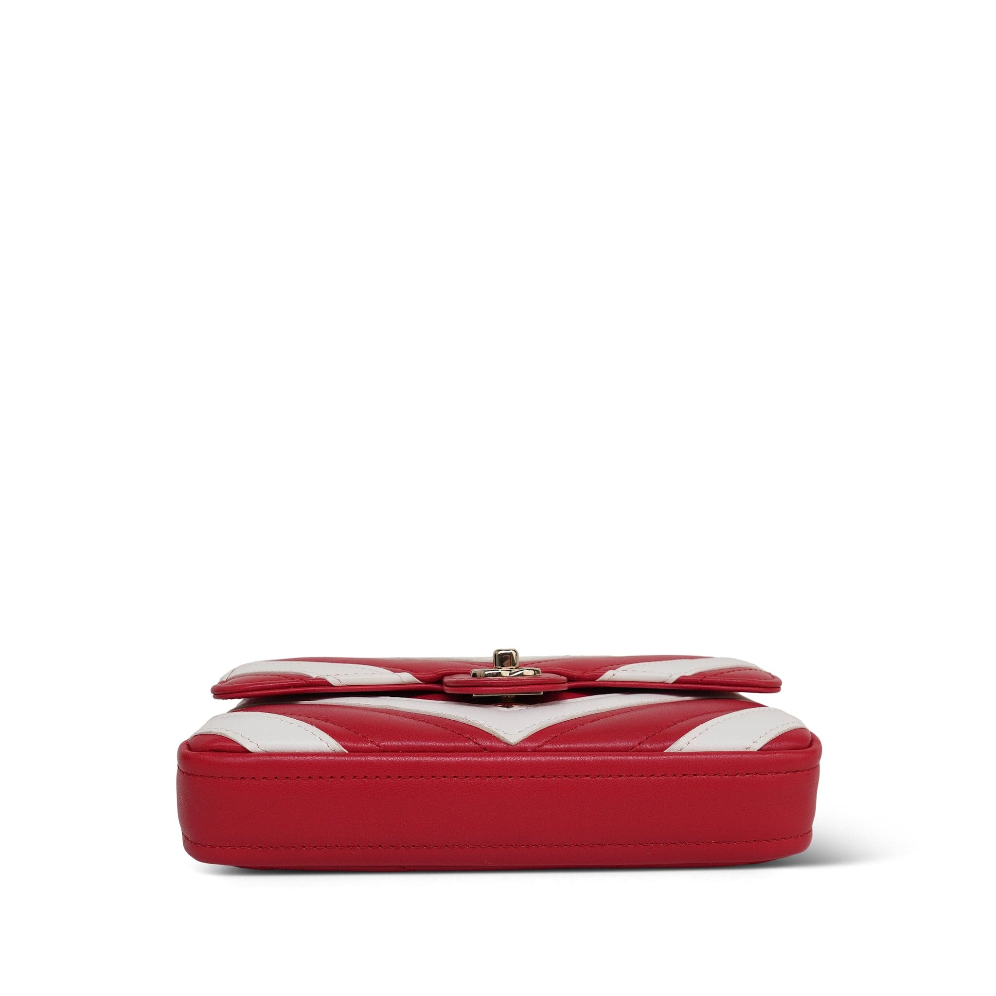 Red White Chevron Lambskin Quilted Mini Single Flap