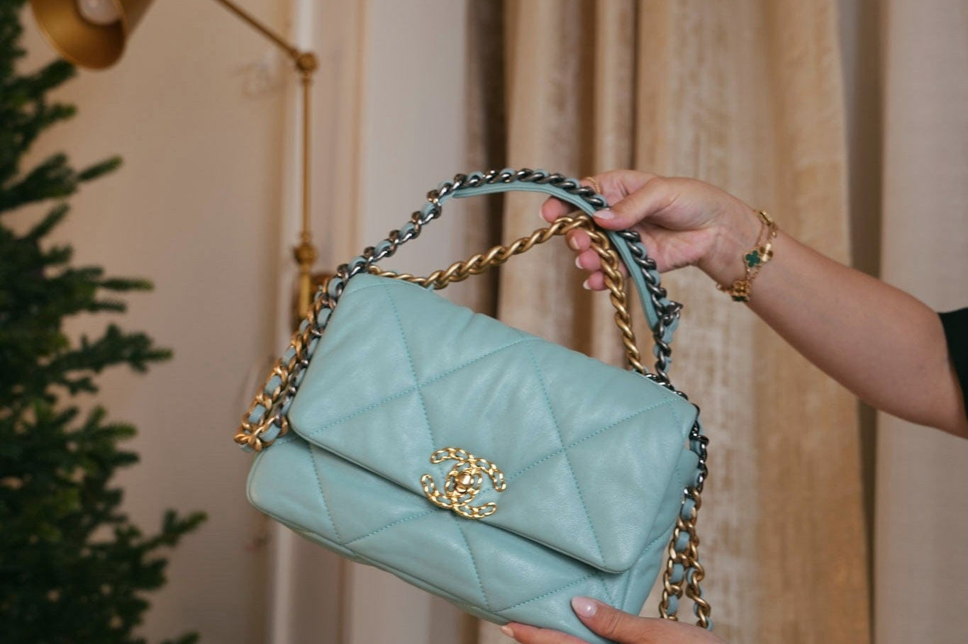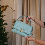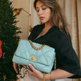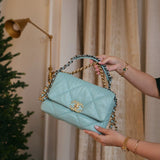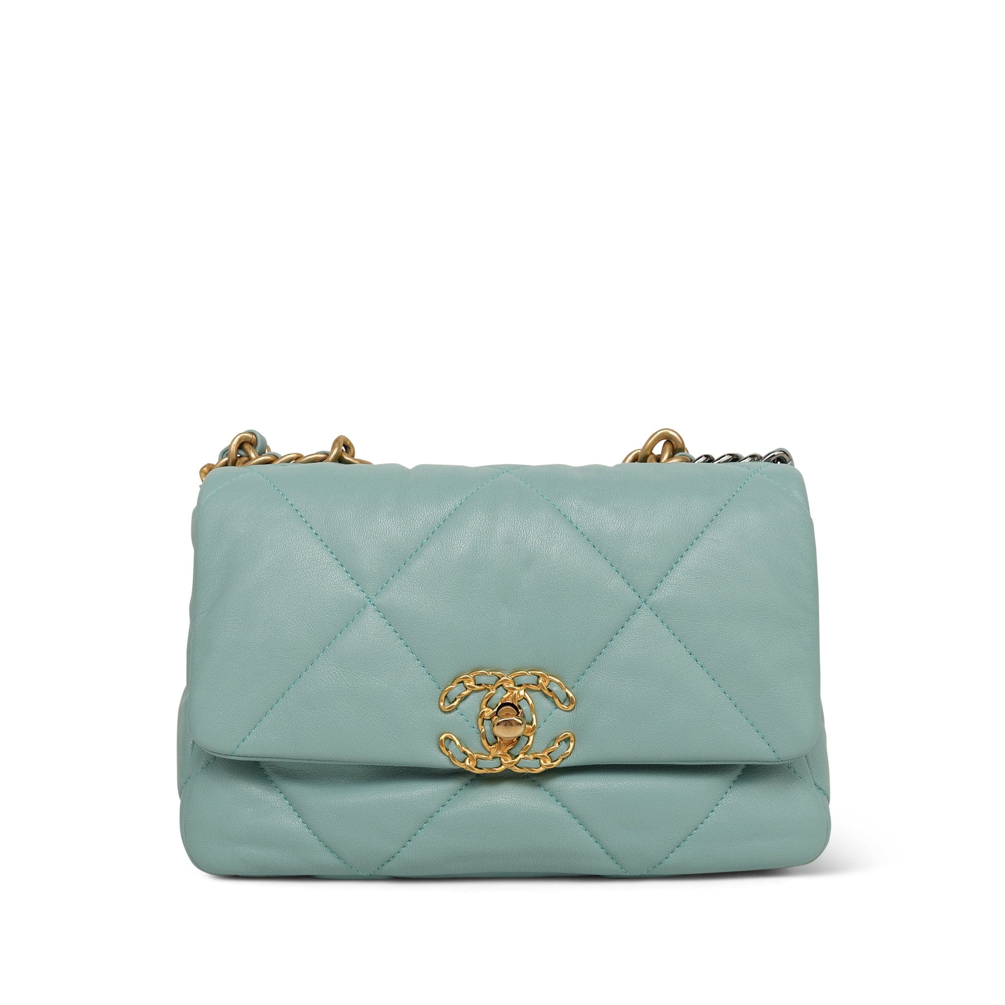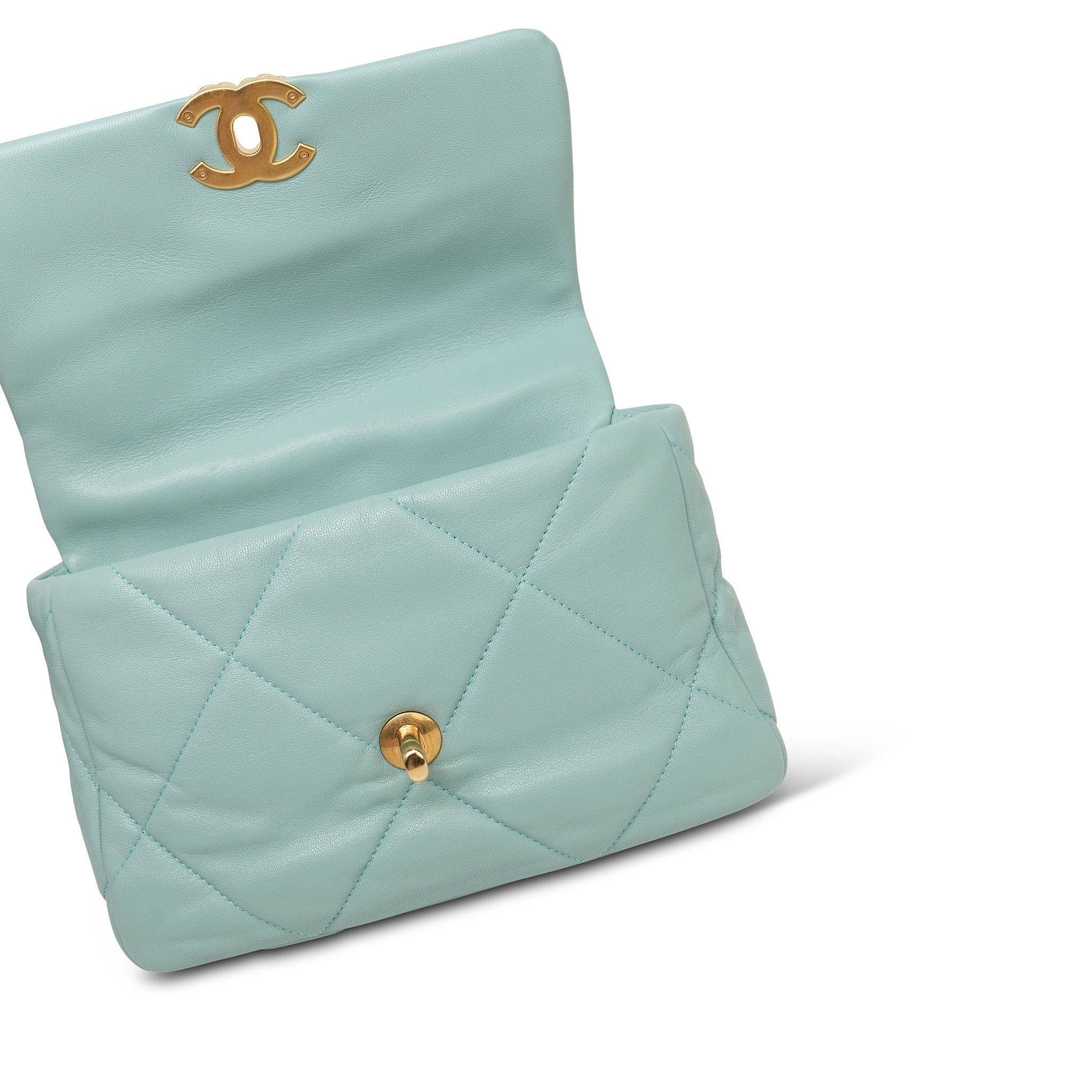 Tiffany Blue Lambskin Quilted 19 Flap Small Mixed Hardware