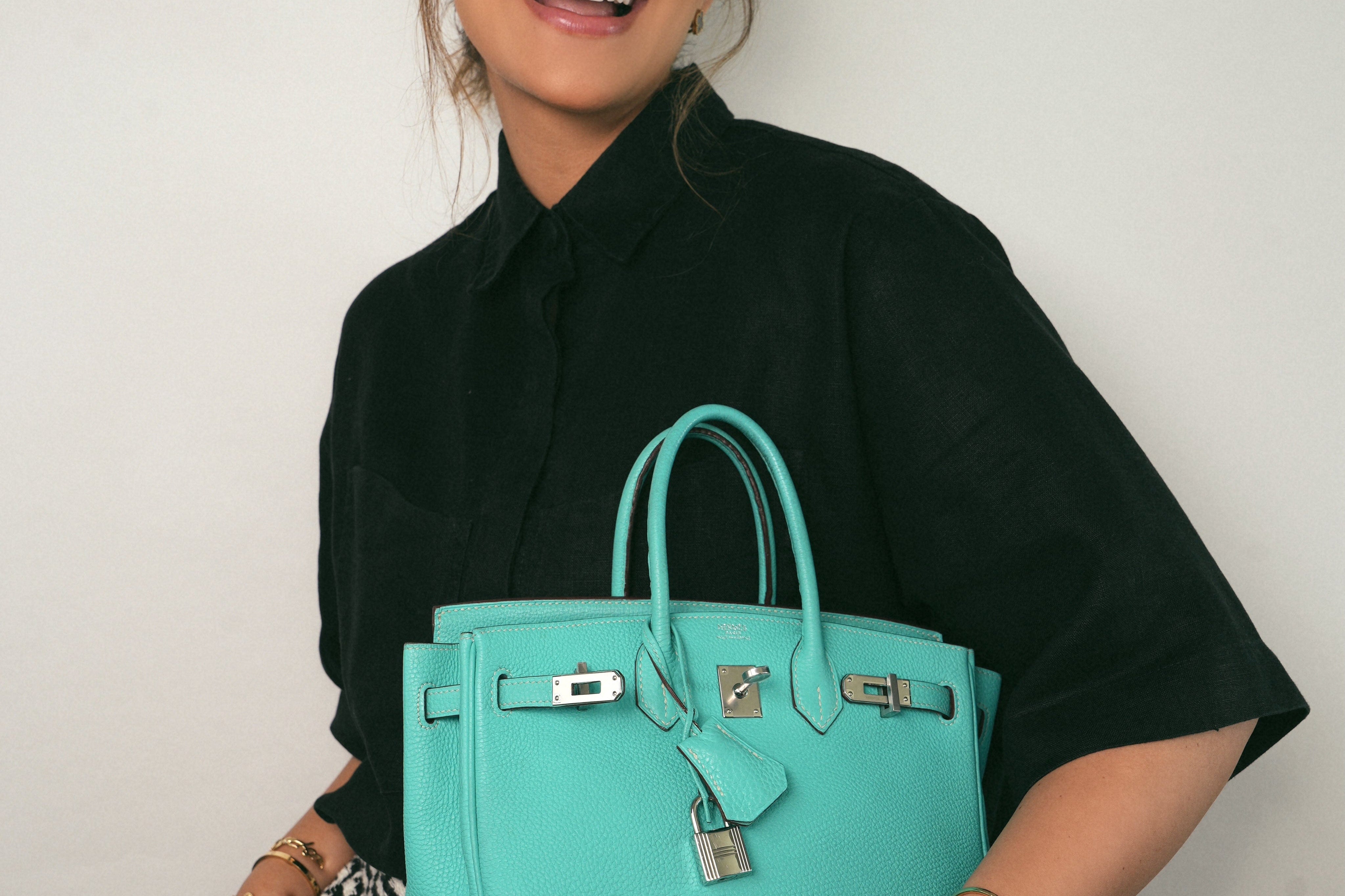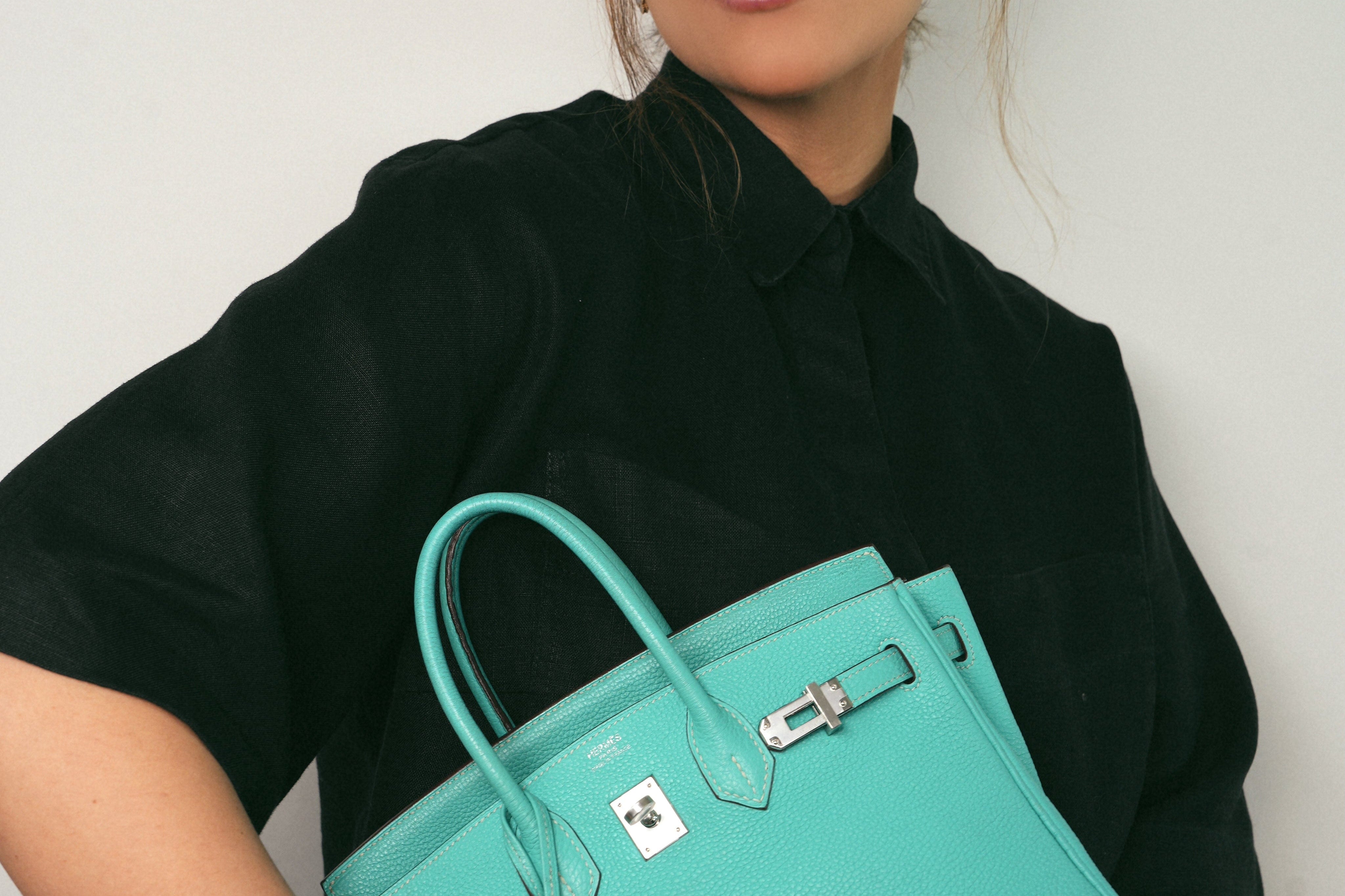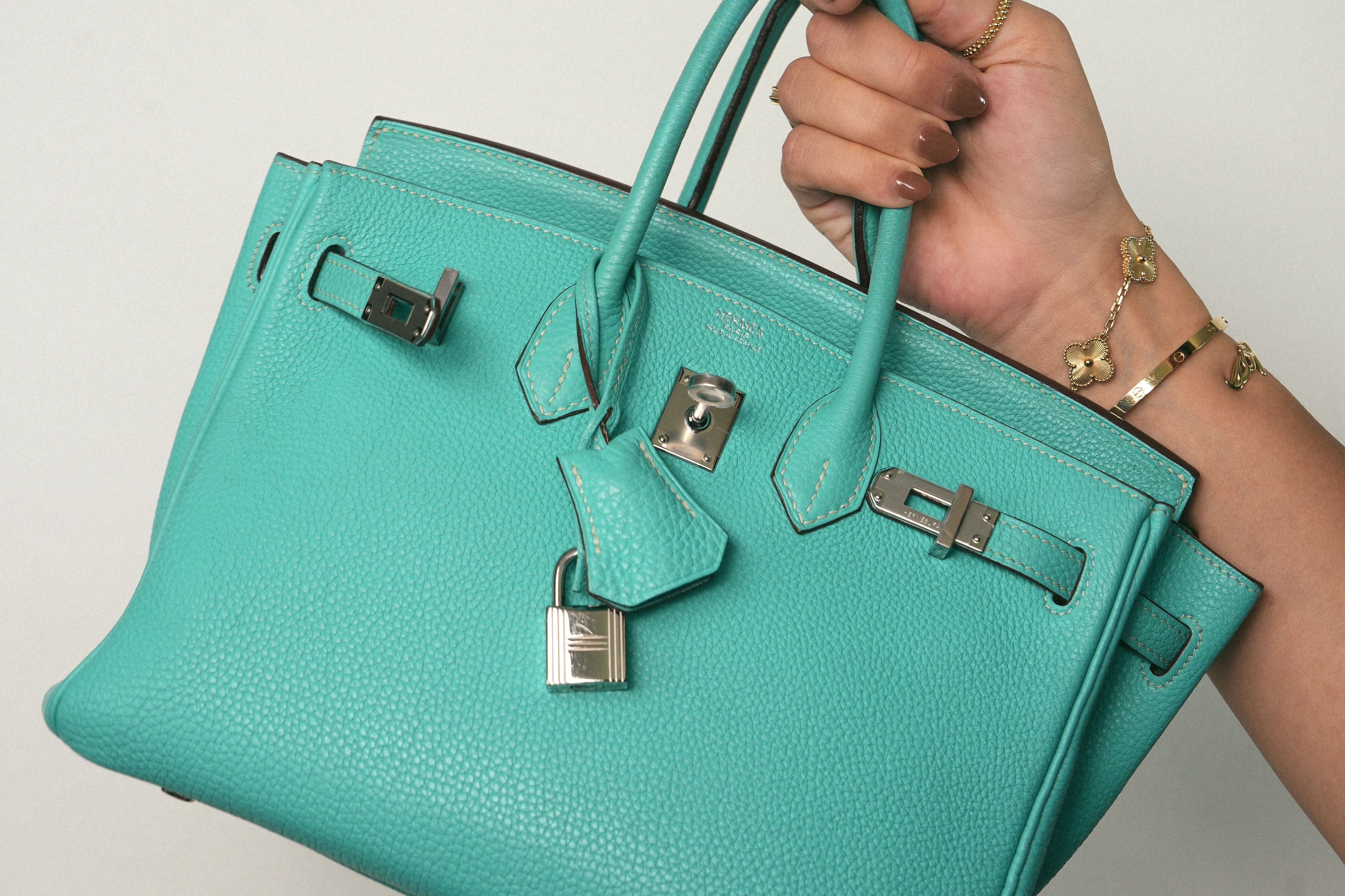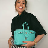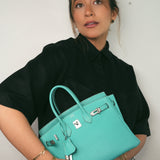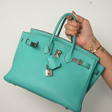 Birkin 25 Bleu Lagoon Veau Togo Palladium Plated L Square Stamp