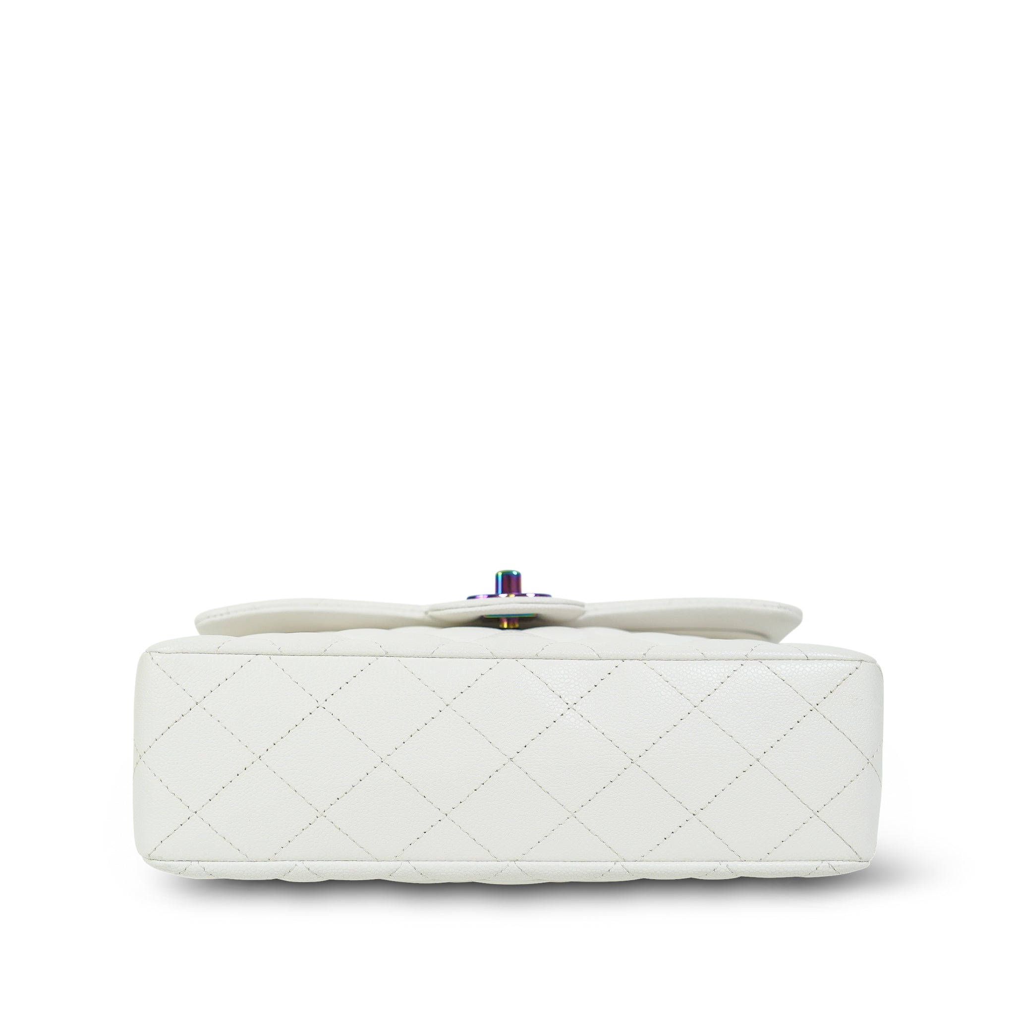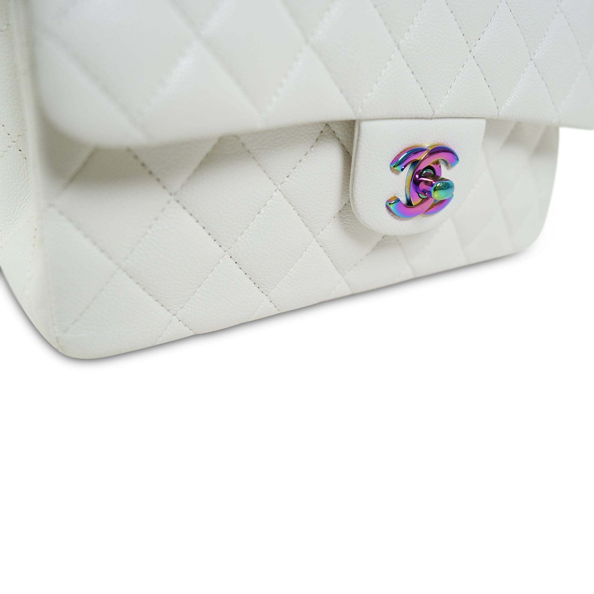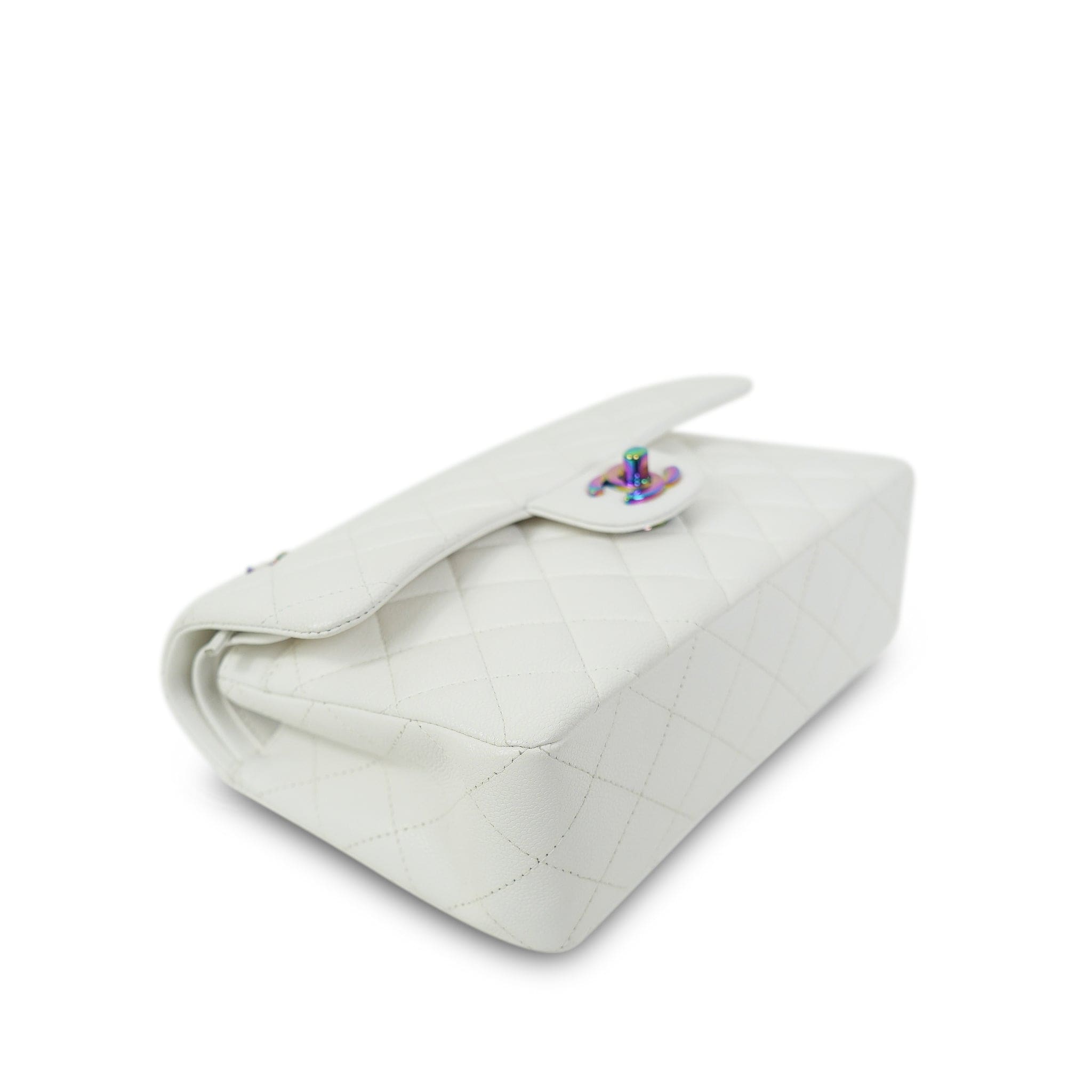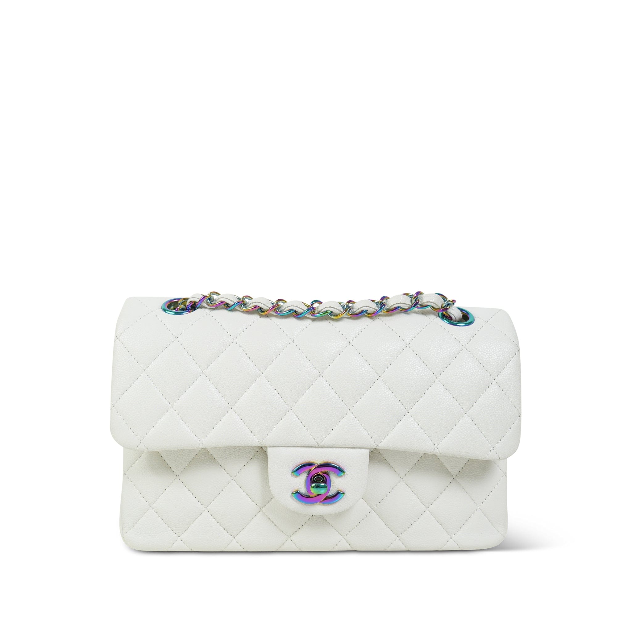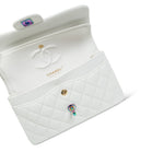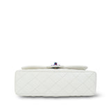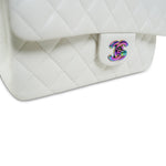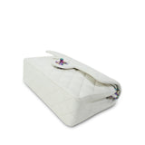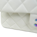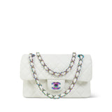 White Caviar Quilted Classic Flap Small Rainbow Hardware