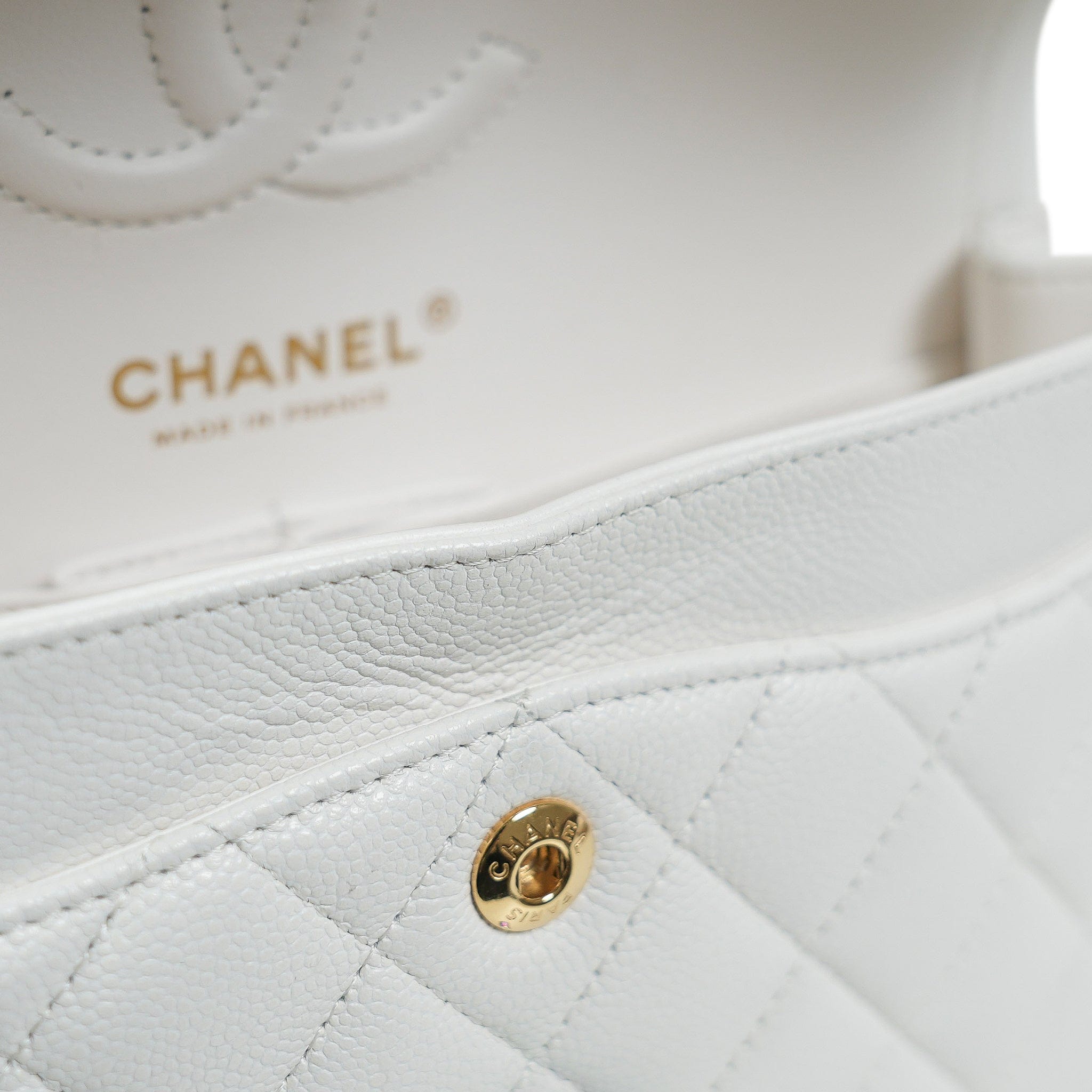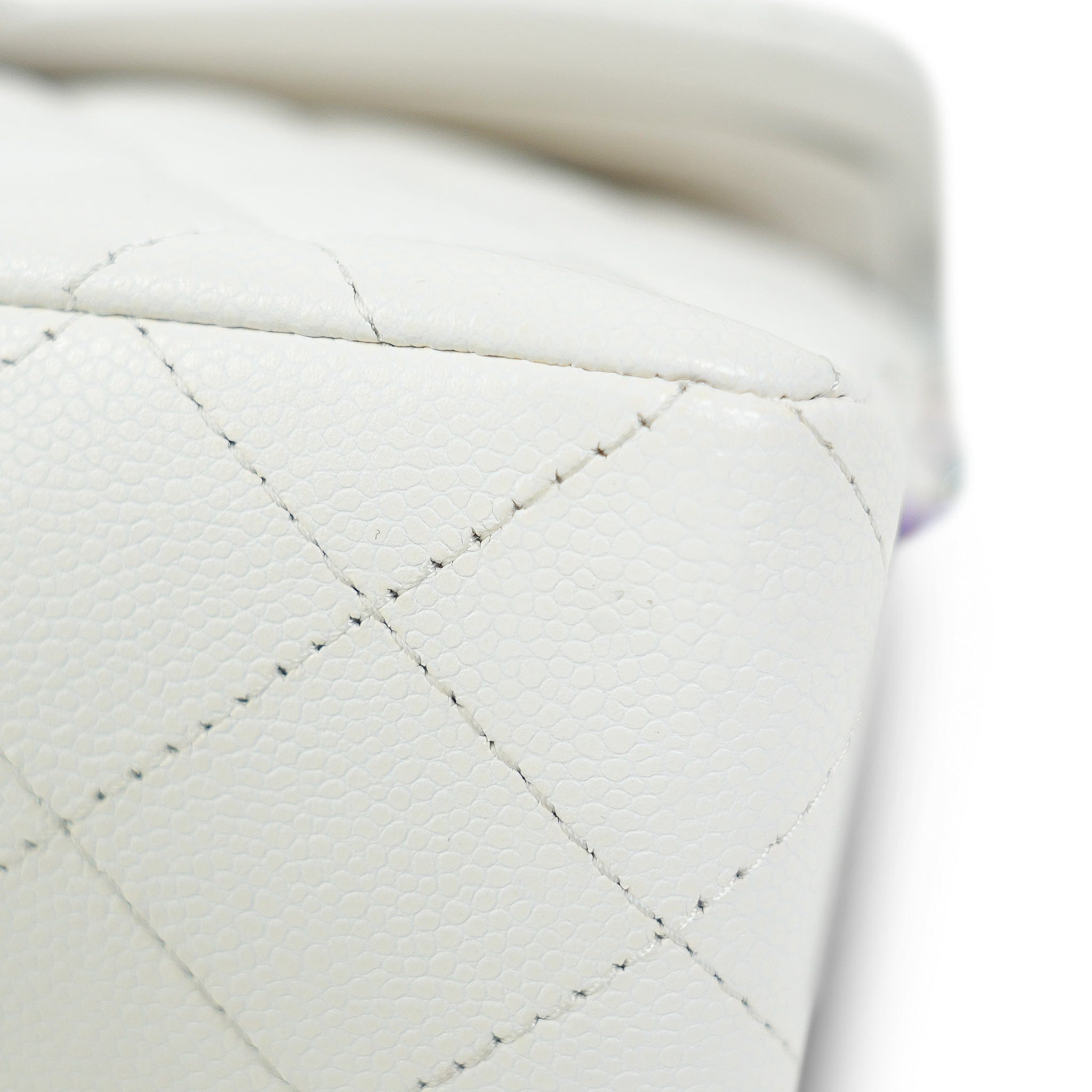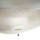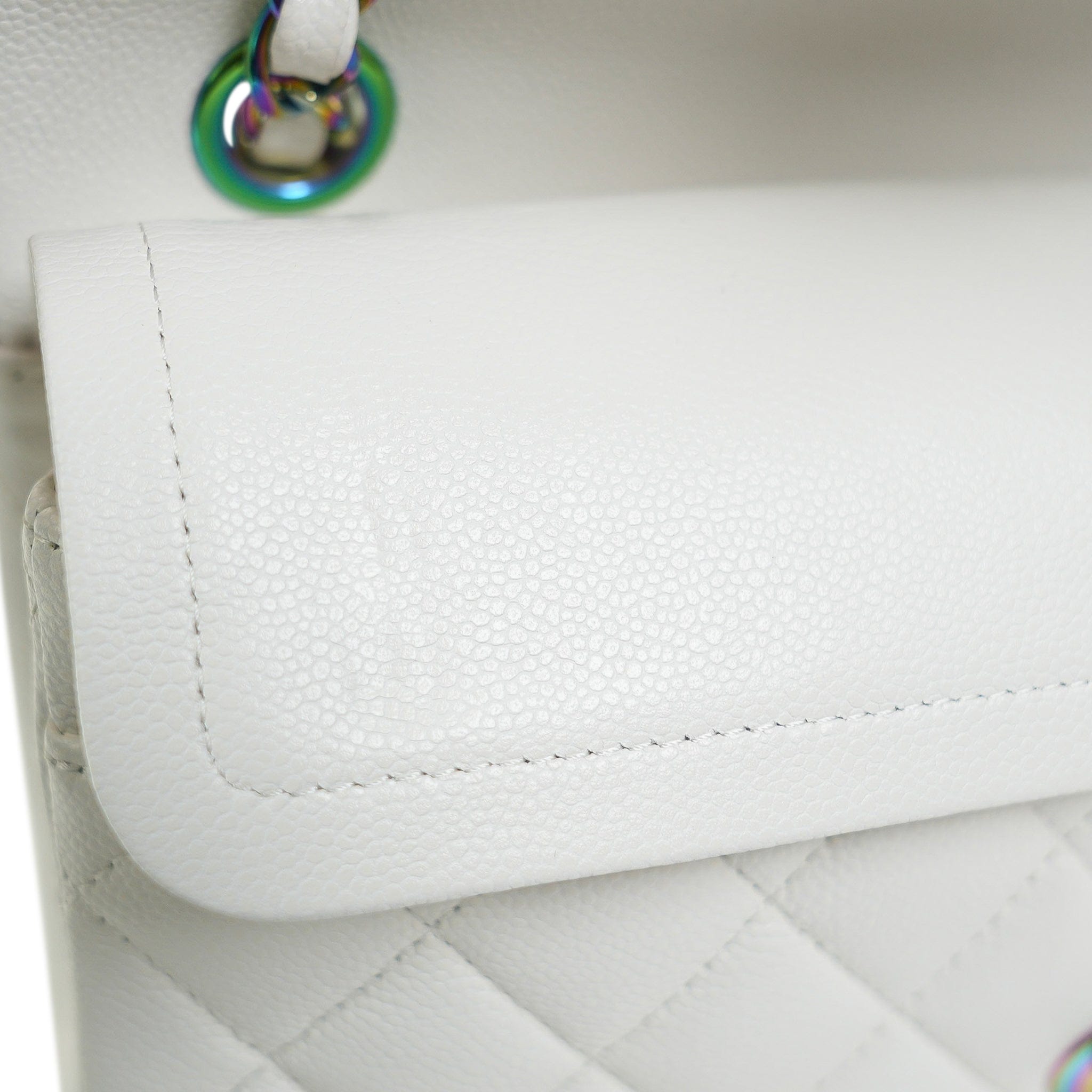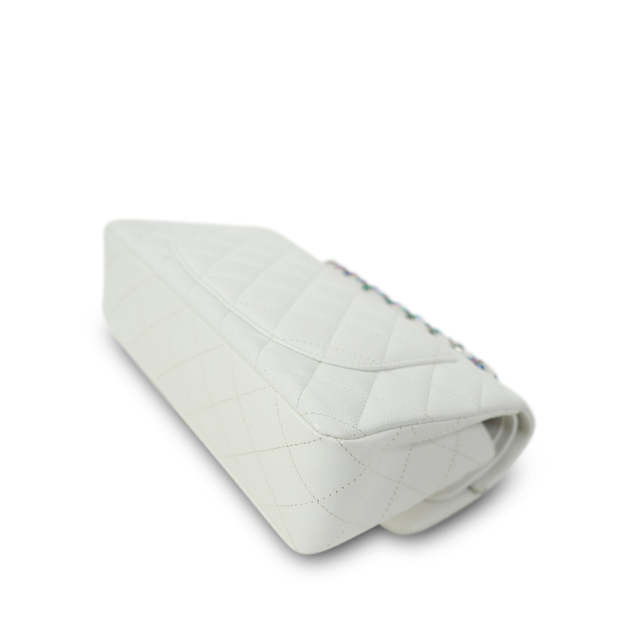 White Caviar Quilted Classic Flap Small Rainbow Hardware