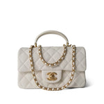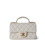 21S White / Ivory Caviar Quilted Mini Top Handle Aged Gold Hardware